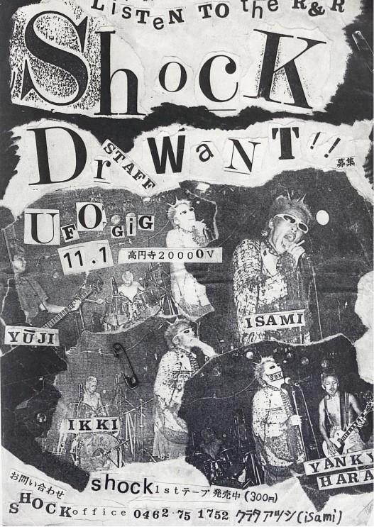 You often performed live together with The Studlys who were on a skinhead compilation. Also, I heard a rumour that a member of Shock joined the Skinhead band United Changers. Is it true? Were Shock part of the Skinhead scene? I was on good terms with the Skinhead scene then but I didn’t really have anything to do with it. Our bassist Hiroki was originally in United Changers. The other members Shinji (vocals), Etsuomi (guitar) and Shinpei (drums) were friends from high school, I met them at a New Rote’ka gig.