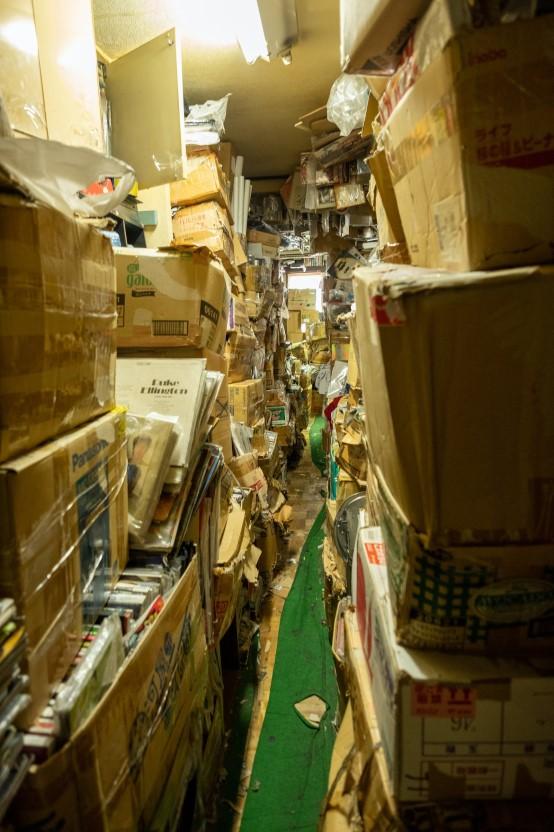 The first time I went to the shop was with my friend Pat Toole, it took us a while to find the shop in the narrow streets off of Nakano Broadway (a famous shopping arcade) but we eventually came across a small sign that read ‘Flower Records’ we climbed a staircase of what looked like a block of residential flats to a hallway where there are a row of small brown metal doors, barely any with signs on to give you an idea of what is behind them but there was one door open - the door to Flower records. We gazed in amazement into the shop. It can only be likened to the home of a hoarder, floor to ceiling cardboard boxes filled with collector’s treasures. The entry to the shop is so narrow due to the boxes piled high that we had to shuffle inside sideways. Once inside there was a gentleman by the name of Mr.Tomizawa who sat on a small chair behind the counter with his dated Mac computer adding listings to Yahoo Japan Auctions with a pile of rarities surrounding him and his radio playing a Baseball game at full volume. The ceiling had records, CDs and tapes in small polythene bags that have then been precariously pinned to the ceiling and the room was littered with boxes, all almost overflowing with stock.