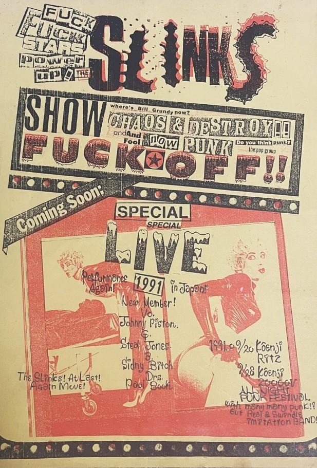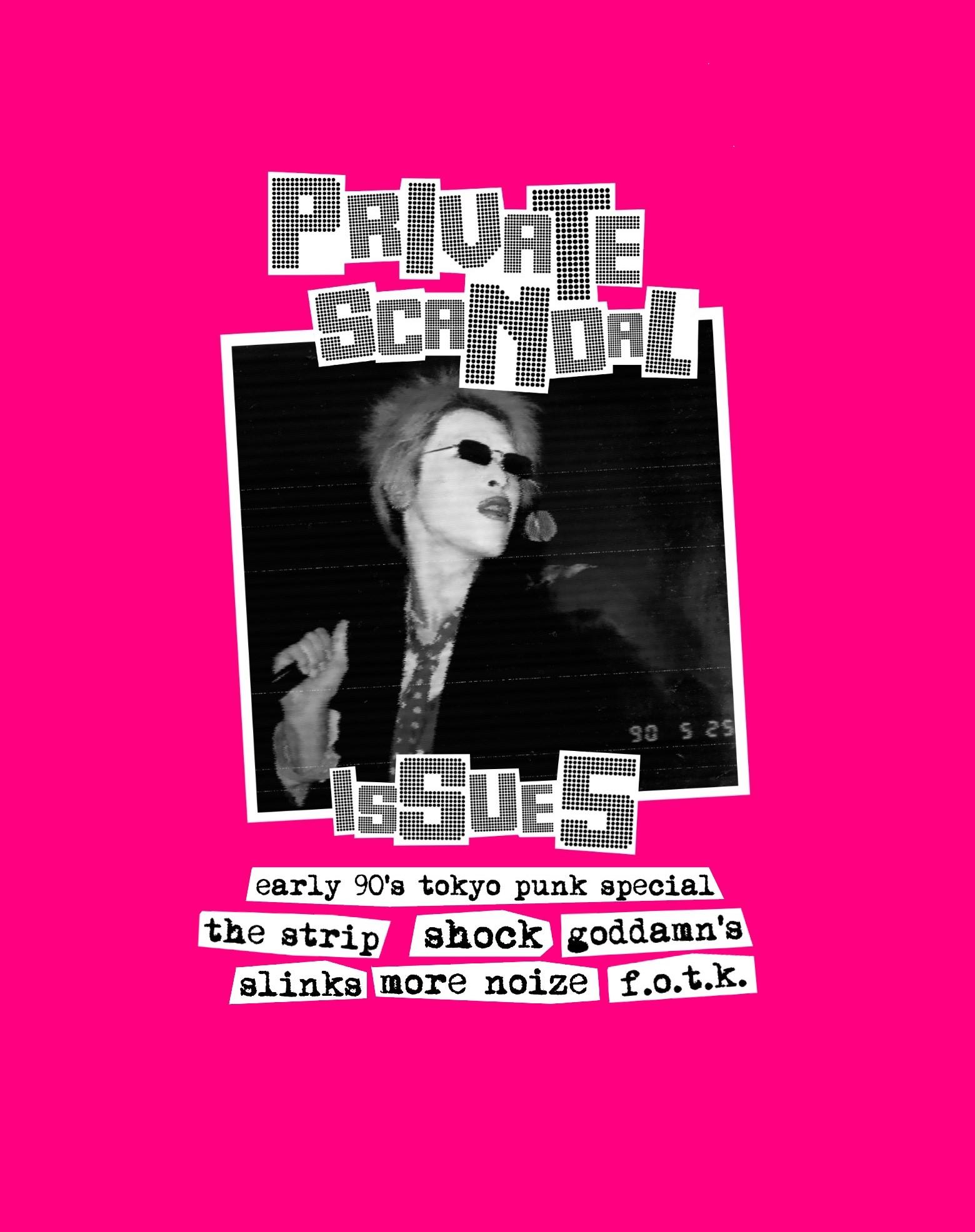 Hello, welcome to another issue of Private Scandal, hot off the heels of the last one. To tell the truth I almost finished the last issue in late 2019 but I was busy, then Covid came along and forced everybody into lockdown. In an ideal world being stuck in the house meant I had all the time in the world to finish it but I just didn’t have the motivation. I was focusing on releases but it finally came out earlier this year and I was really pleased with the response to it. I think it was worth the extra money having it printed in full colour. I have even been thinking about doing an expended edition of issue 3, the Chiba punk special. It seems to me that recently there has been more interest in the Chiba punk scene, in particular the C&C and The Margarets. The Visible Fucker/ Stinkers split CD I released sold out in less than 24 hours, I couldn’t believe it, I repressed a few more copies which I still have for sale. Before I do that I feel like there is another stone that remains unturned – the early 90’s Tokyo punk rock scene. You would think being Japan’s capital city that the bands from Tokyo would have plenty of exposure and be household names but there was a scene of 70’s style bands who were playing frequently who were victims of poor distribution or limited releases, more often than not on their own labels, bands such as The Slinks (not to be confused with The Slicks), Shock, The Strip and The Goddamns to name a few. As such I feel the scene has largely been forgotten despite the fact of the people who were part of these bands are still part of the punk scene today. I have been working with The Goddamns on a discography CD which should be available by the time you’re reading this, but I liked the idea of writing an issue of the zine focusing on this scene. I reached out to the people I knew who were part of it who were more than happy to talk about their formative years in the Tokyo scene. I hope you enjoy it…