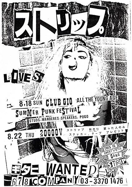 There were some other bands I saw often then that I wasn’t so close with such as The Slinks (they scared the hell out of me! Haha, as you know some members are now in Seppuku Pistols), 狂乱 (Kyoran - some members are also in Seppuku Pistols now), Hot Scat (an old drummer of Spunky Boys played for them) and Strawberries (I think they were old Skinheads?).