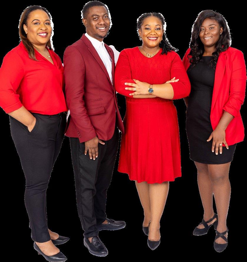 From left to right: Tashna-Toya Edwards, Marketing & Communications Associate, Andre Heslop, Marketing Coordinator, Ammesha Brown, Marketing & Public Relations Manager, Kimecha Bailey, Events & Sponsorship Officer