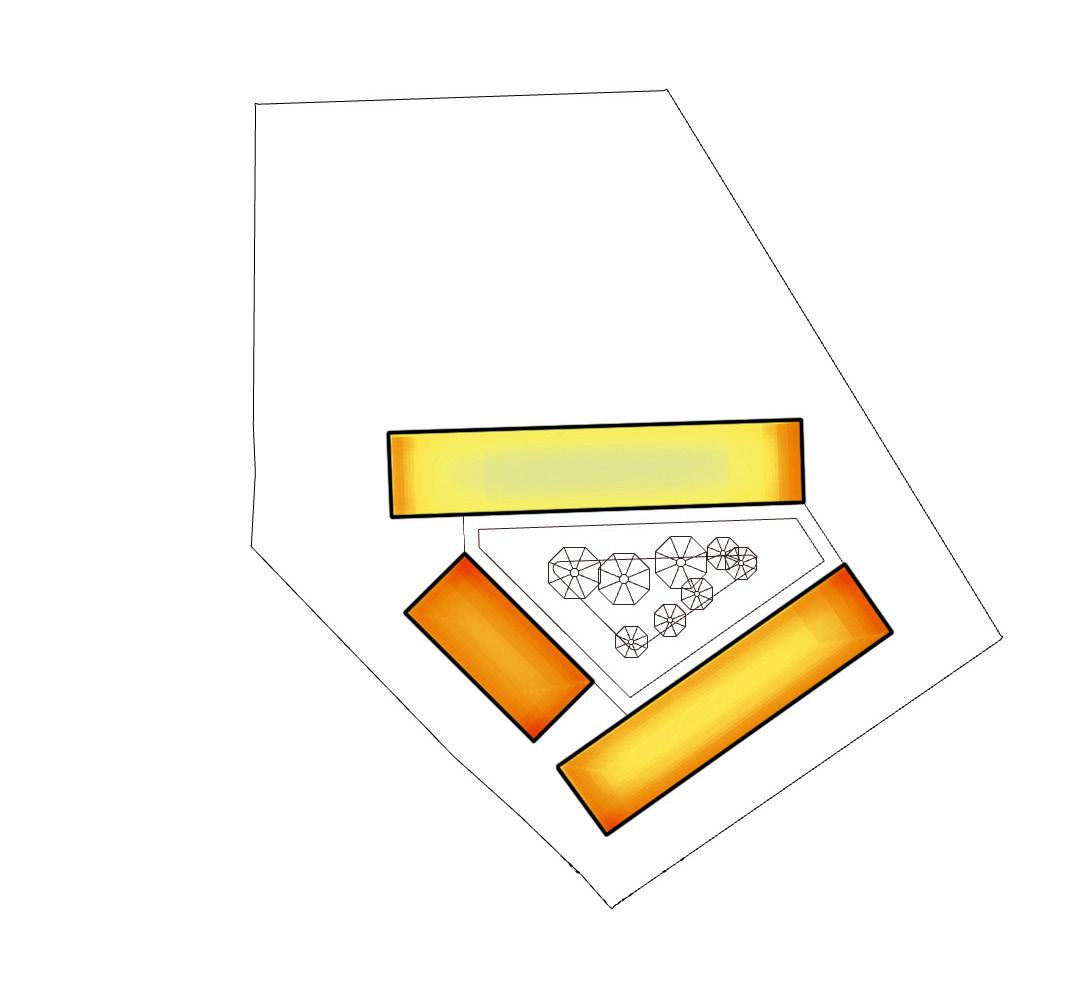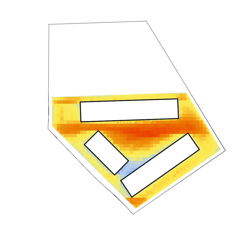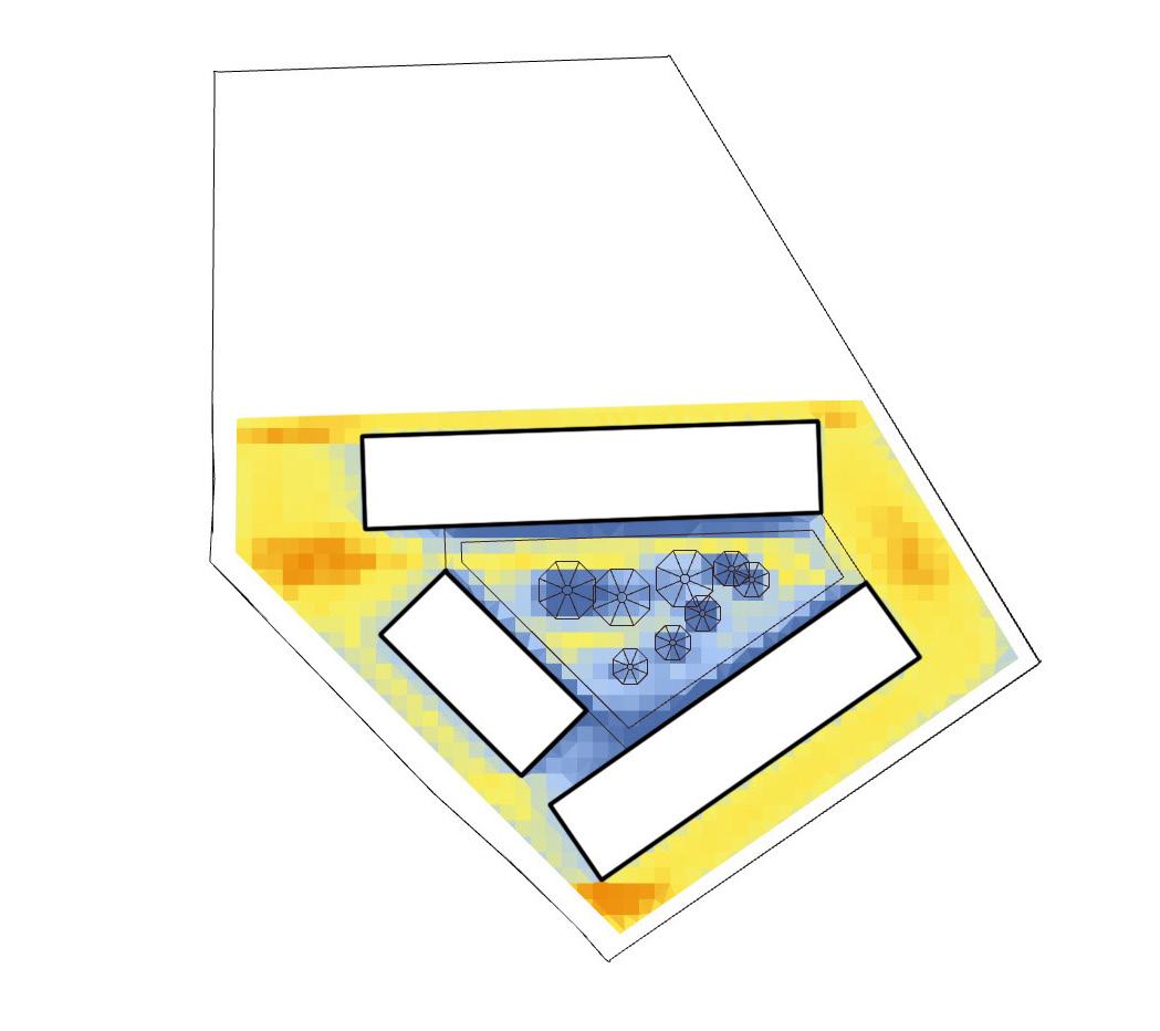 The above sankey diagram is one of the many diagrams which were developed to understand the feasible water loops which can be created to achieve water autarky. This loop took into account all water losses due to surface runoff and waste water treatment. It was found that the total water demand can be theoretically effectively met through the implementation of the above mentioned strategies. Following to the selection of the loop the implementation of these strategies on the design of the built form were studied.