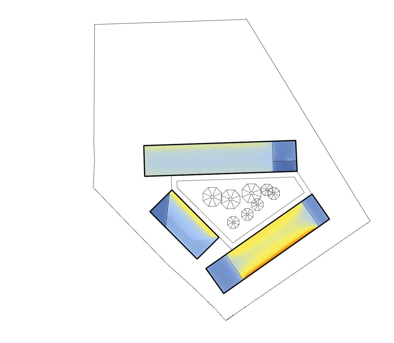 The roof of the building blocks has also been tapered for the installation of solar panels which can further aid in the reduction of the total energy demand that the cooling of the space will create during the summer period, as indicated in the graphs generated above. Further studies are now being carried out in the built project to tally the results which were obtained from the simulation.