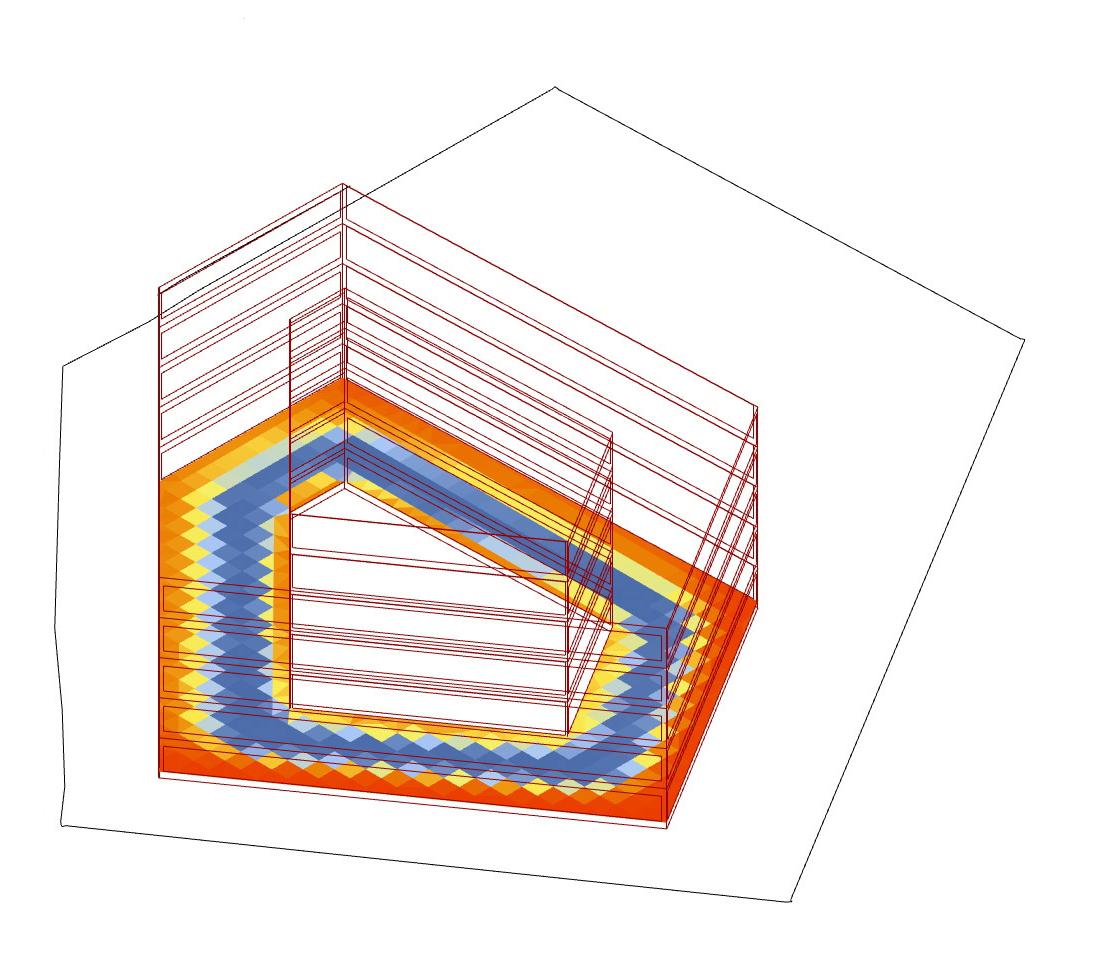 Once option 1 was considered for the building basing of the project the following steps included introduction of passive design strategies. For this purpose the psychometric chart was studied and the passive strategies which aid in thermal comfort were considered through introduction of these strategies on the built model made in grasshopper. For this purpose the building simulation was run in openstudio an the number of hours that the user feels comfortable in the space was considered as the benchmark. As per the psychometric chart the user can feel comfortable in the space for a maximum of 36% of the year using passive strategies such as external sun shading, high thermal mass, night flushing and passive heat gain.