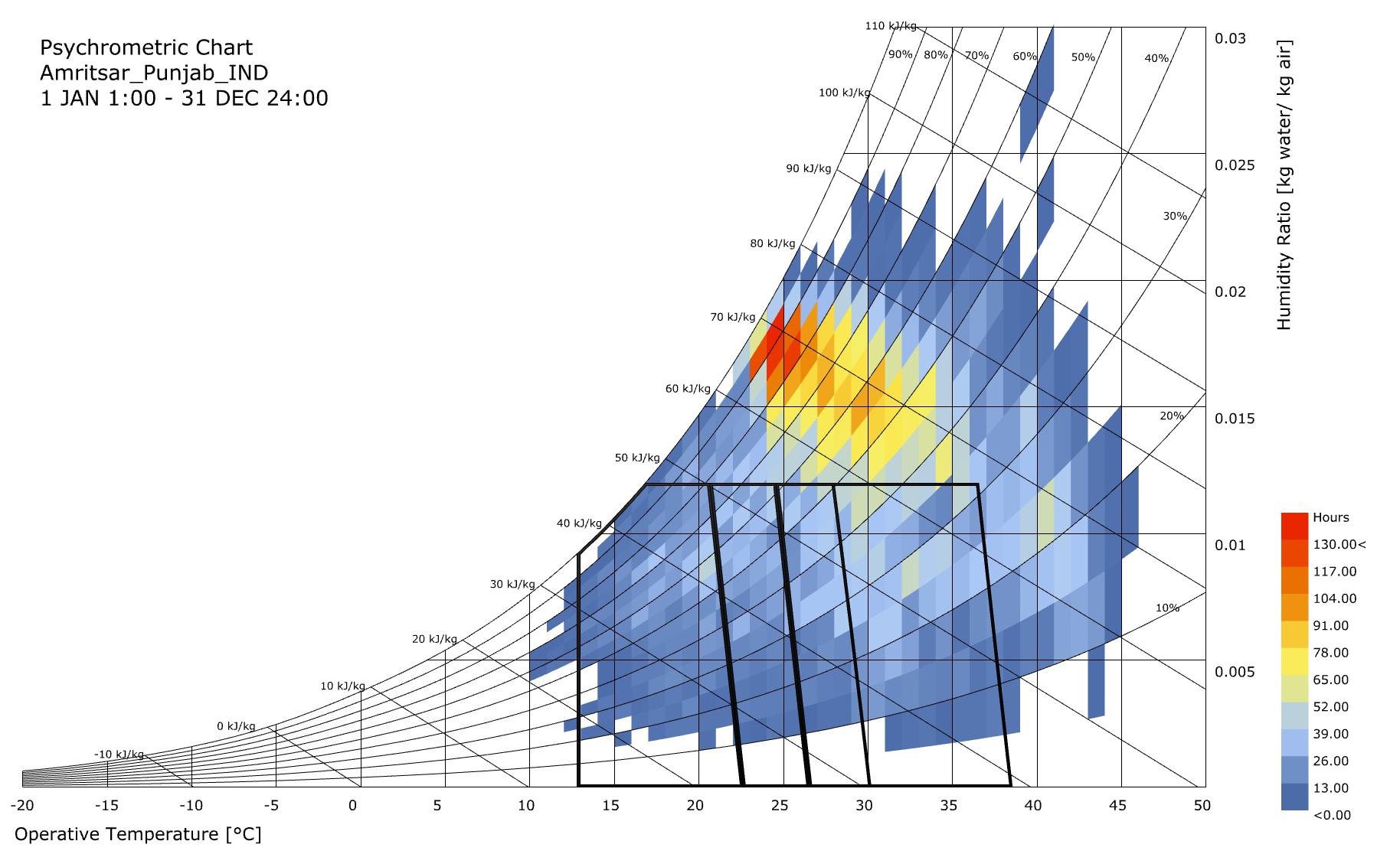 PSYCHOMETRIC CHART WITH CLIMATIC CONDITIONS OF AMRITSAR PLOTTED IN IT
