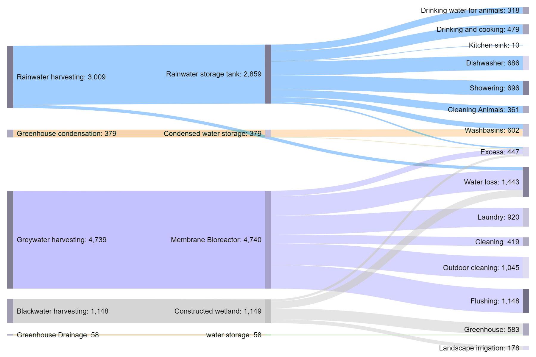 SANKEY DIAGRAM INDICATING THE WATER MANAGEMENT SCHEME