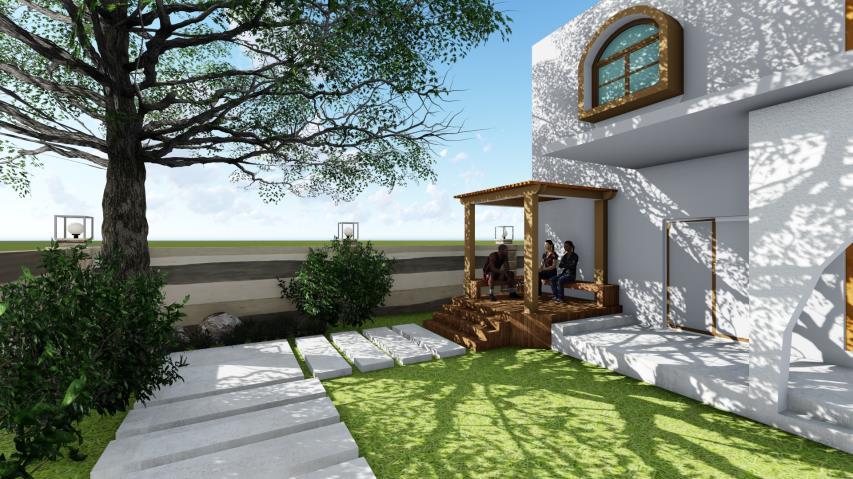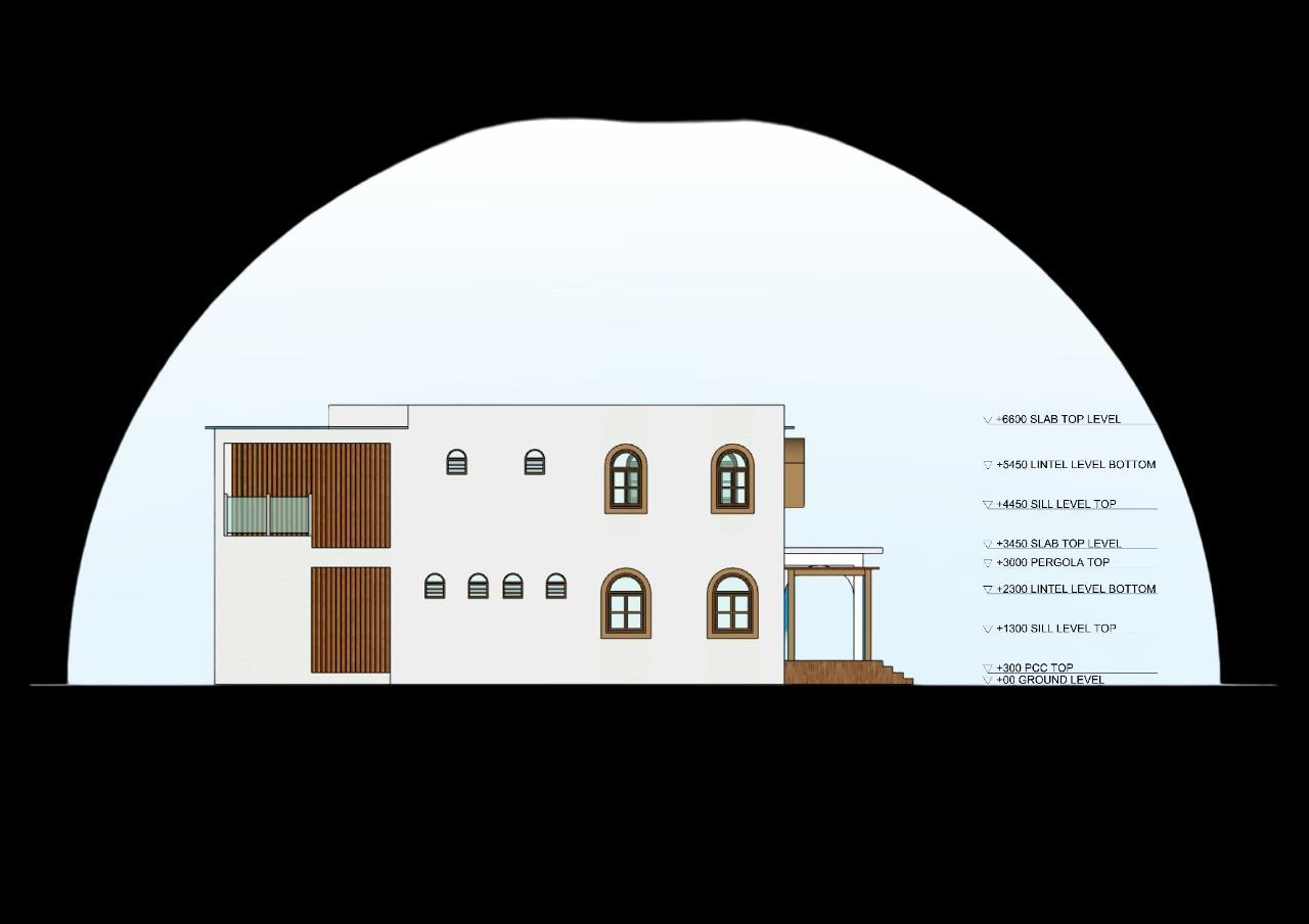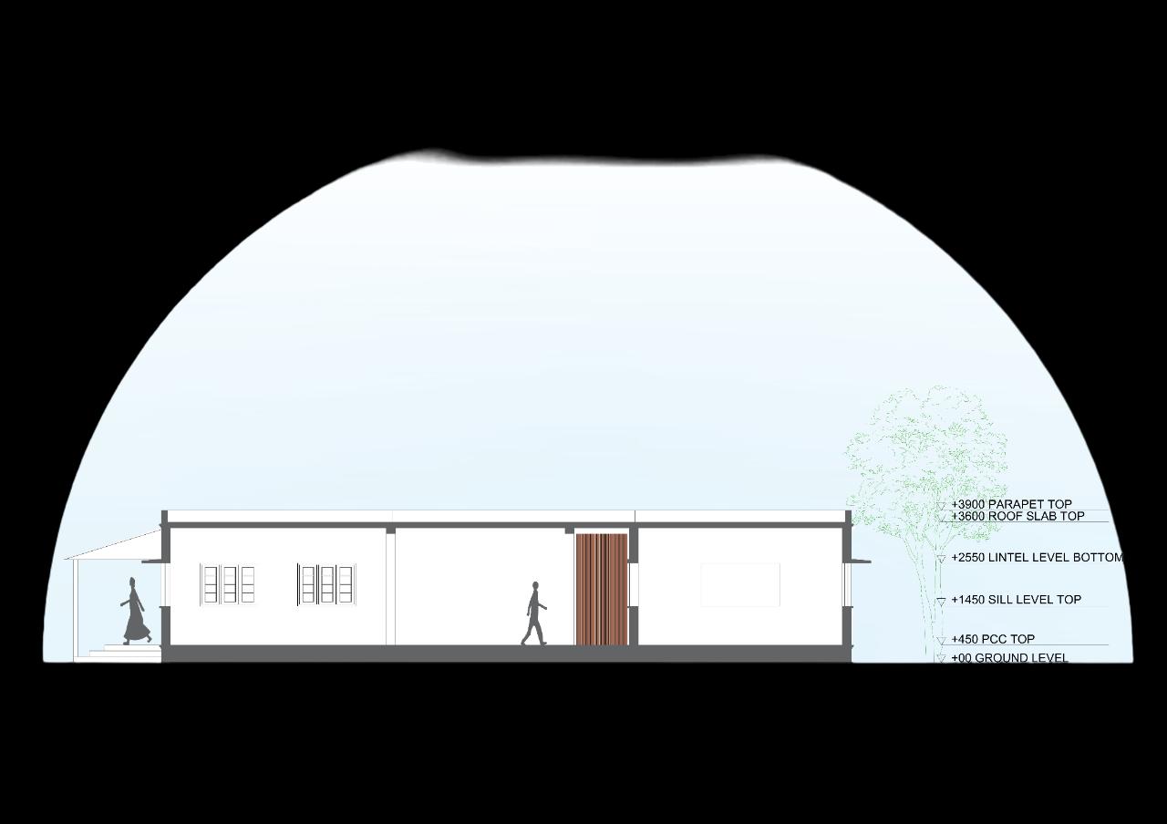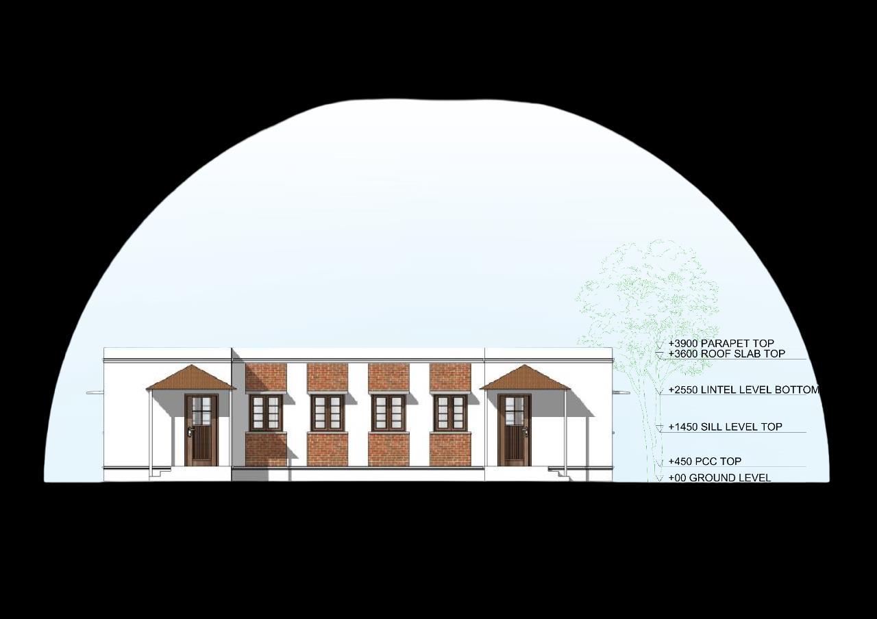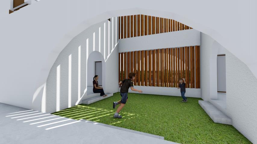 As seen throughout, specific elements have been designed with earthy tones, like, the jail, arched chajjas & windows, the outdoor pergola and the compound wall. It was done so to highlight those elements as they are main the connect between in & out