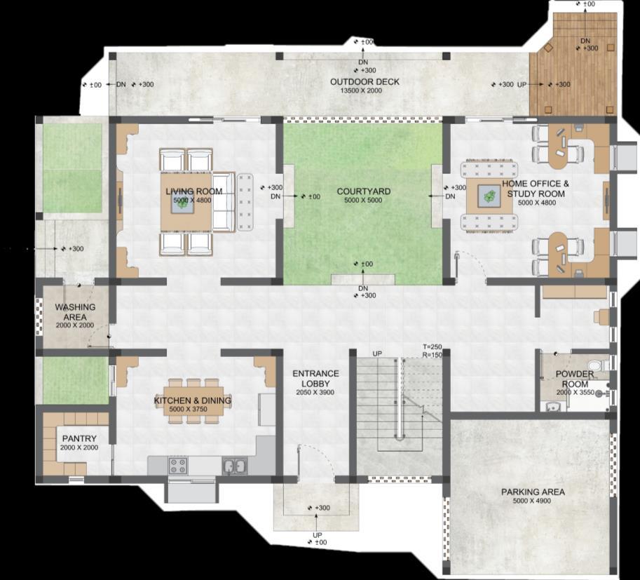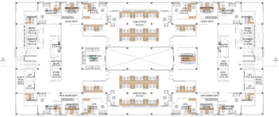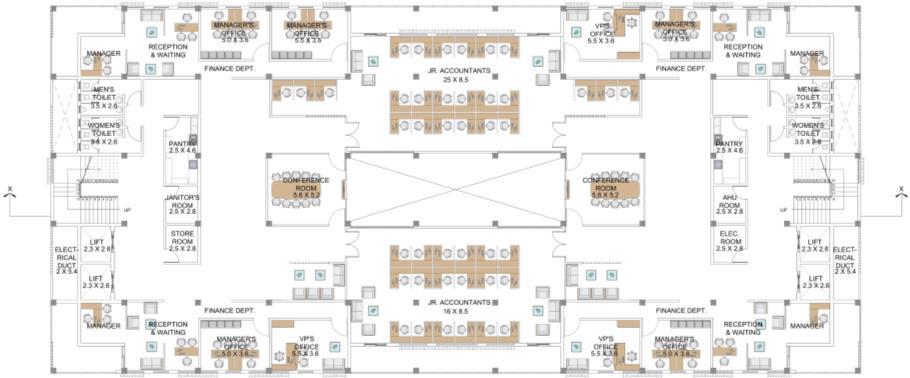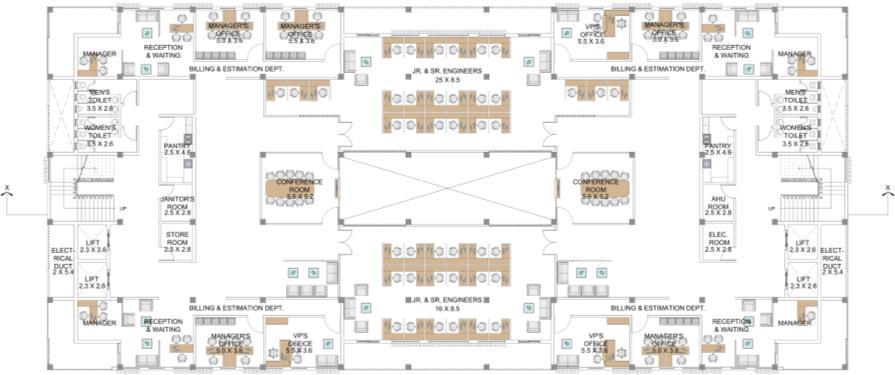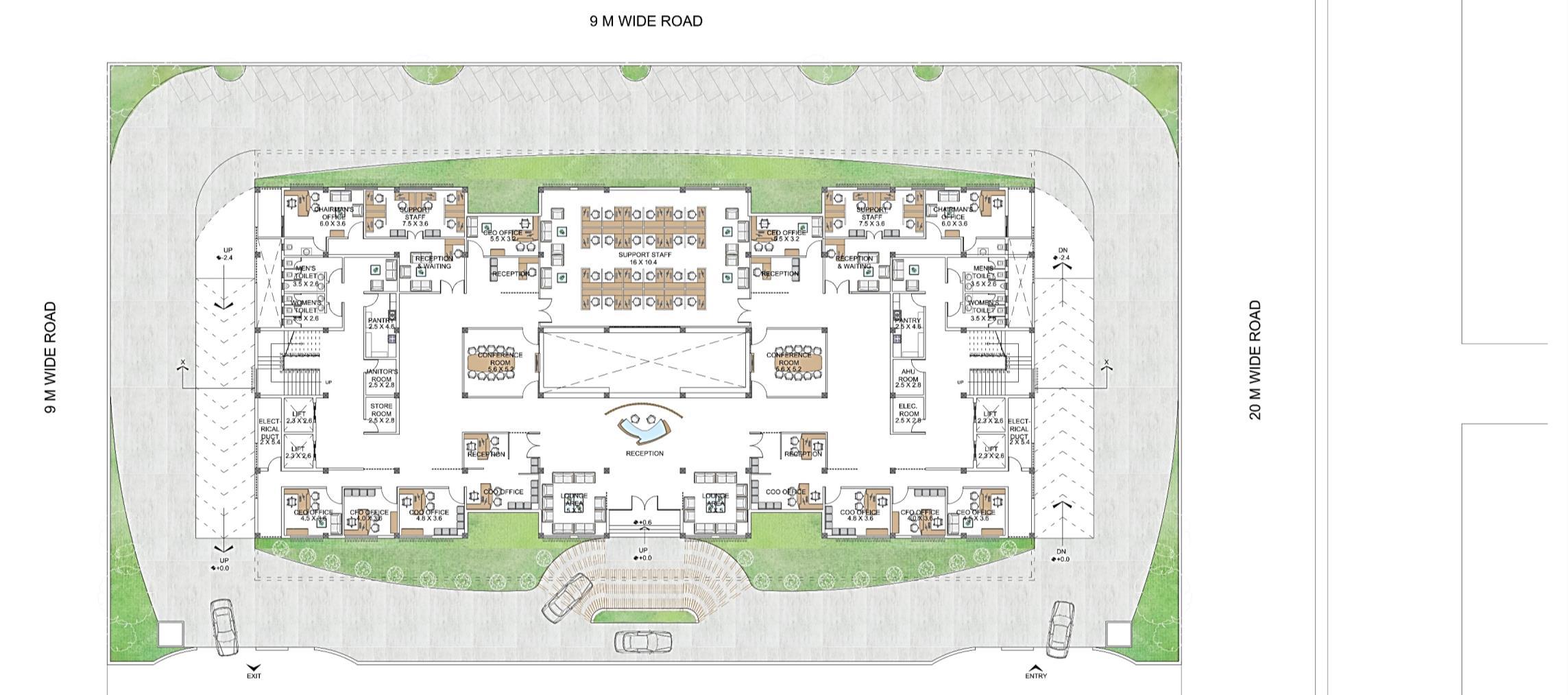 The project brief was intended to design a office building for an infrastructure company with a built-up area consumption of 7000 sq. The design should be in manner than gives an ease to the user in aspects of functionality and movability throughout the space that ensures its optimum use.