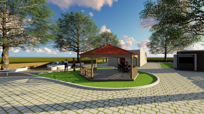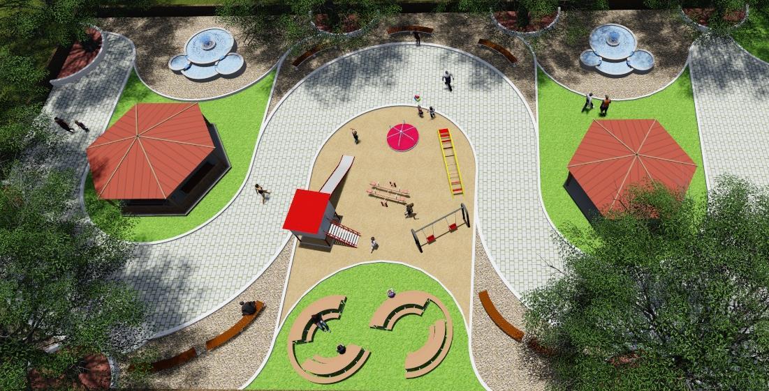 14 ACUPRESSURE WALKWAY SECURITY CABIN WATER FEATURE KIDS PLAY AREA GAZEBO SEATING AREA SELECTED WORK