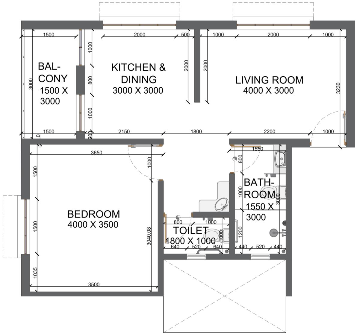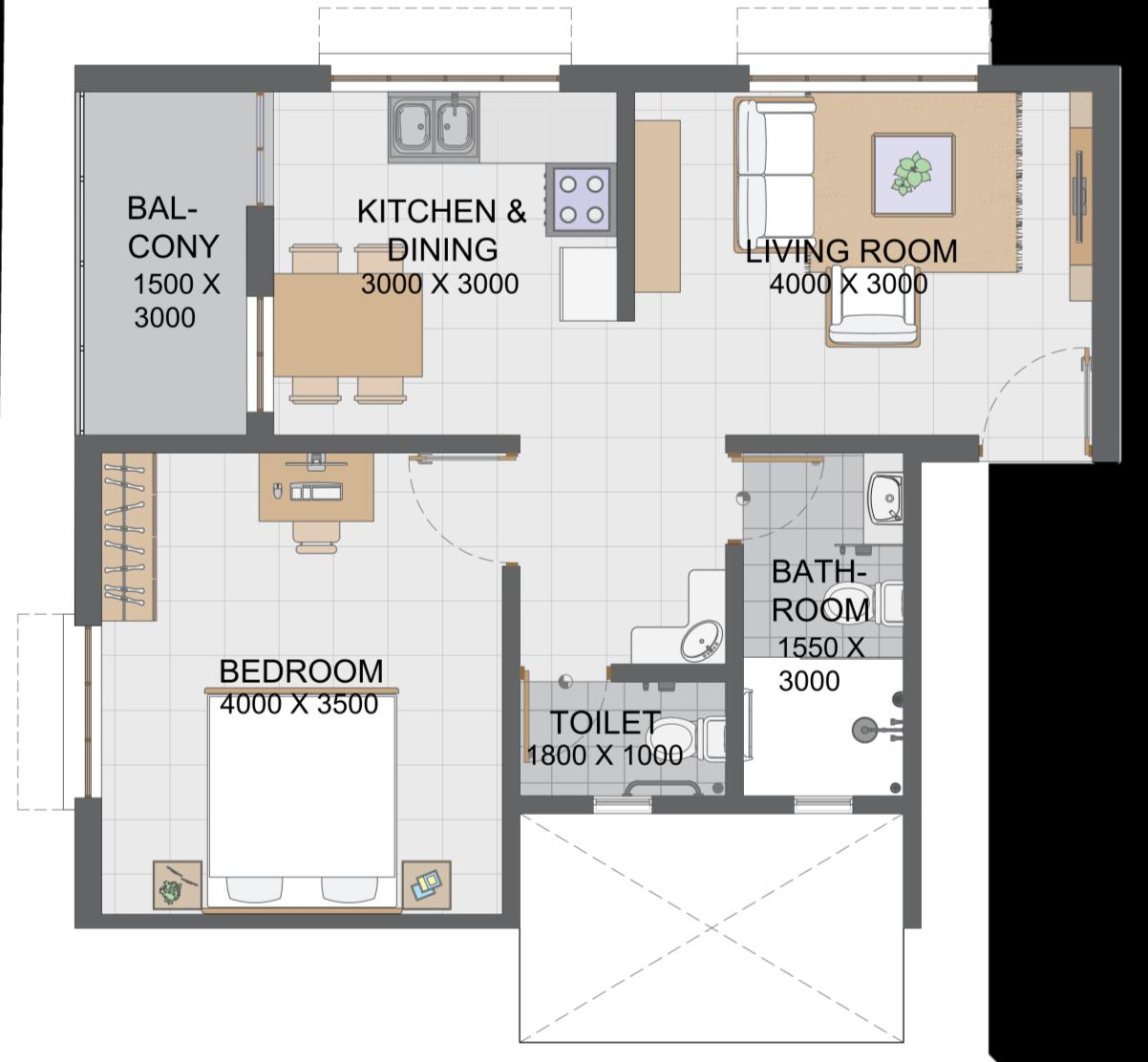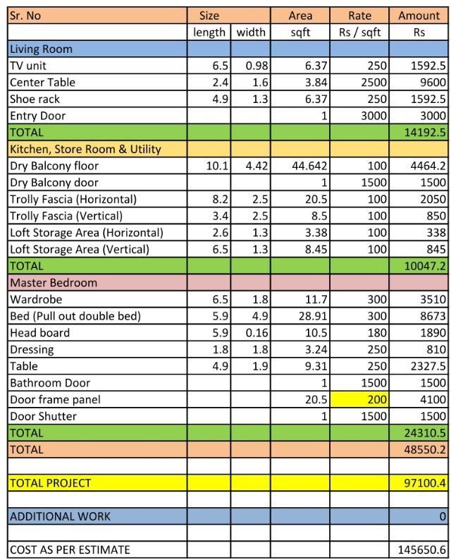 The project brief was intended to design an interior space for a 1 BHK flat with a proposed estimate for specified furniture designed for the space keeping in mind the market rates at the time of proposed design.