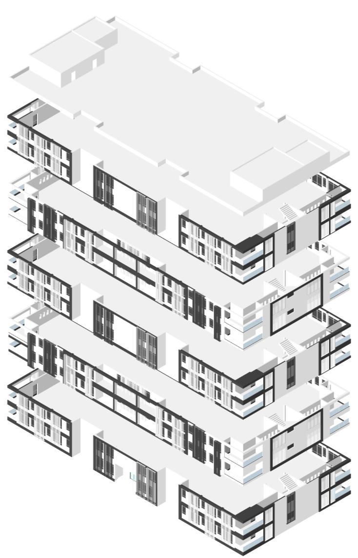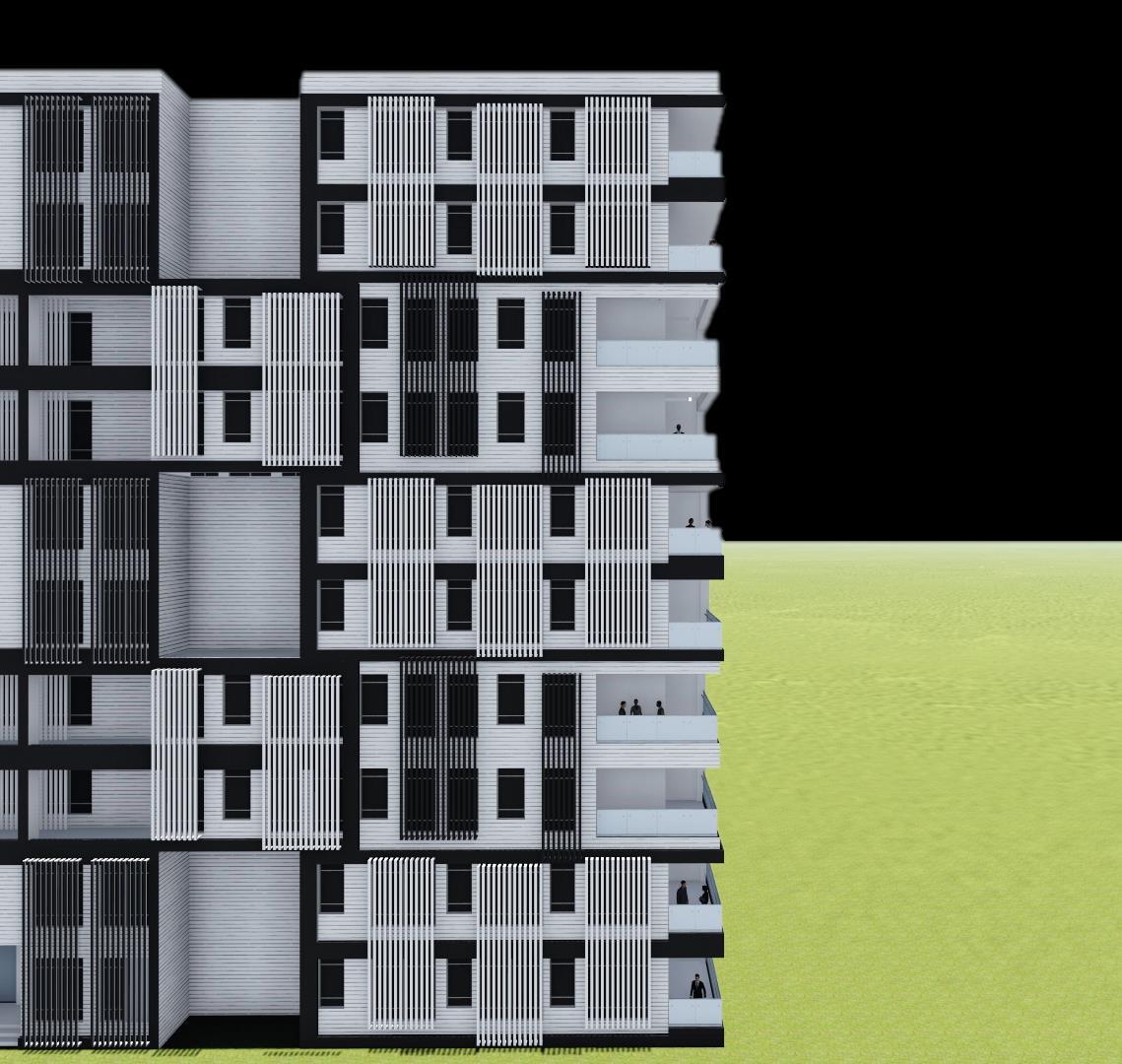 The design for building is inspired typical cubical. kept quite simplistic straight edged voids intervals that change 2 floor plates. With a courtyard the ventilation