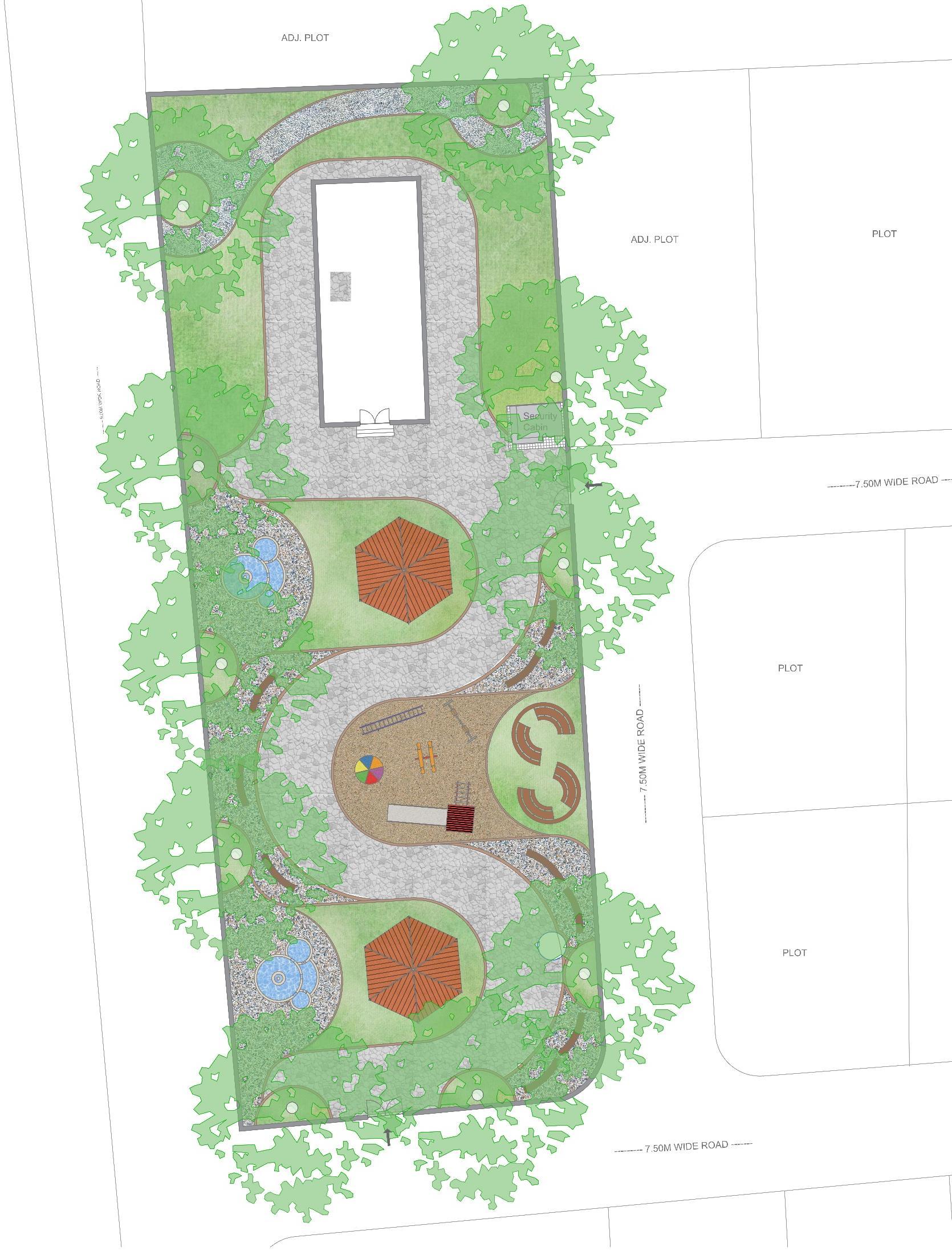 The project brief was intended to design or rather to develop a landscape for a society park based in Pune. Keeping in mind the per existing multi-functional hall on the site, the landscape be in a manner that moulds around the contents of the site and its existing landscape in context to the climate