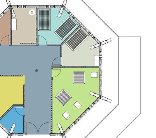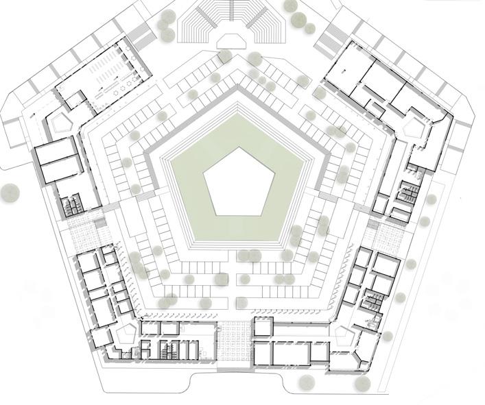 The form comprises of 5 functions academic ,workshop, seminar and recreational so have taken pentagon