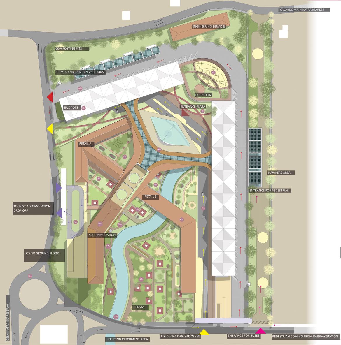 Creating a well-integrated space for the Intermodal Station (IMS) on the outskirts of Katra city is a significant opportunity to not only revive its architectural character but also to contribute a new landmark to the entire region. The site’s location, about 600 meters away from Katra railway station and with bus movement on the peripheral side of the building, provides an advantage in terms of accessibility and connectivity.Utilizing the contours of the site can be a key factor in designing the IMS. By working with the natural topography, enhance the aesthetics and functionality of the station