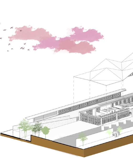 A courtyard is formed to allow natural light and ventillation to come inside the building