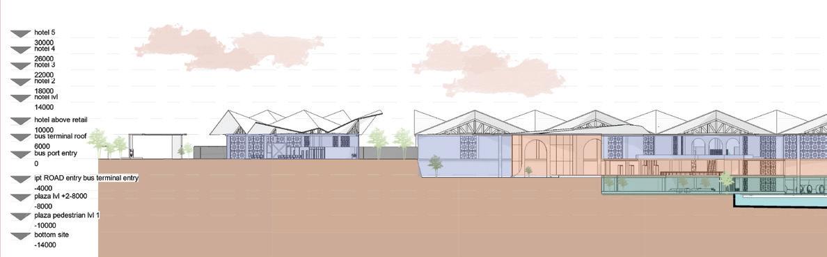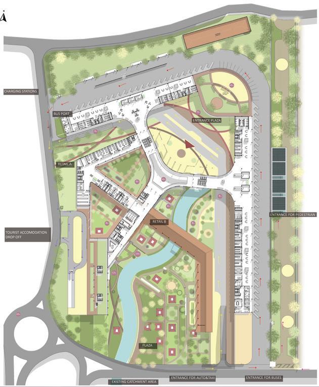 the site circulation of bus and vehicles like taxis cars etc have been segeregated and the bus arival and departure wings are proposed