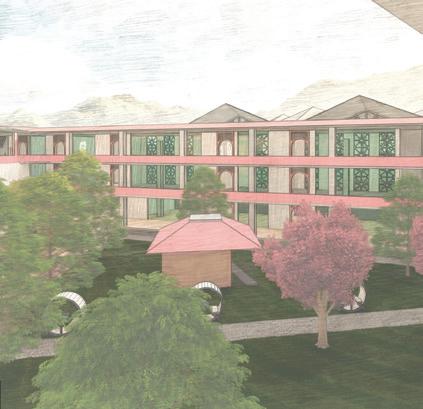 the area near catchment works as a recreational space and above levels have yatri niwas in it