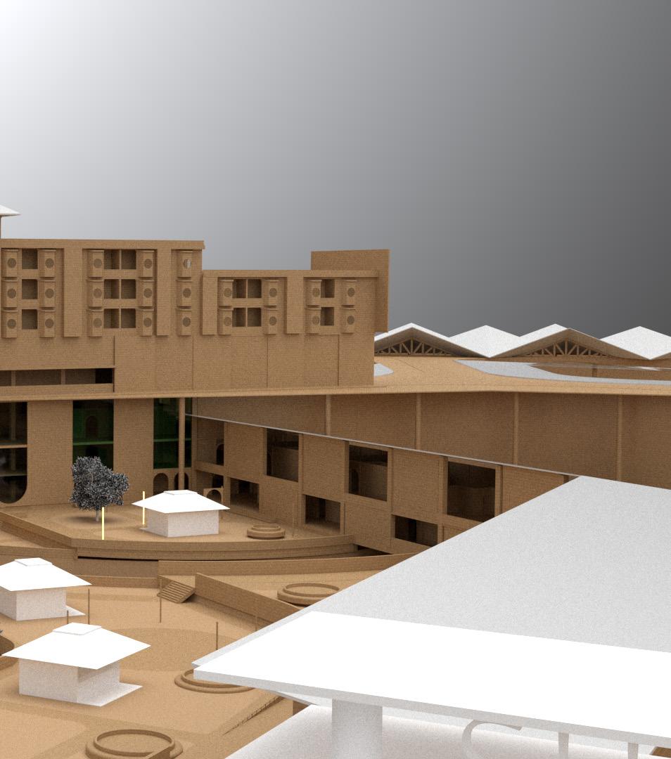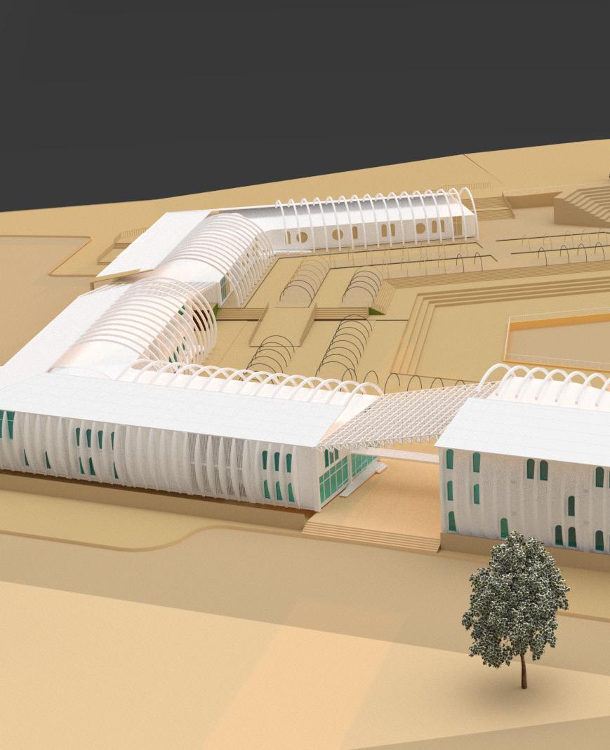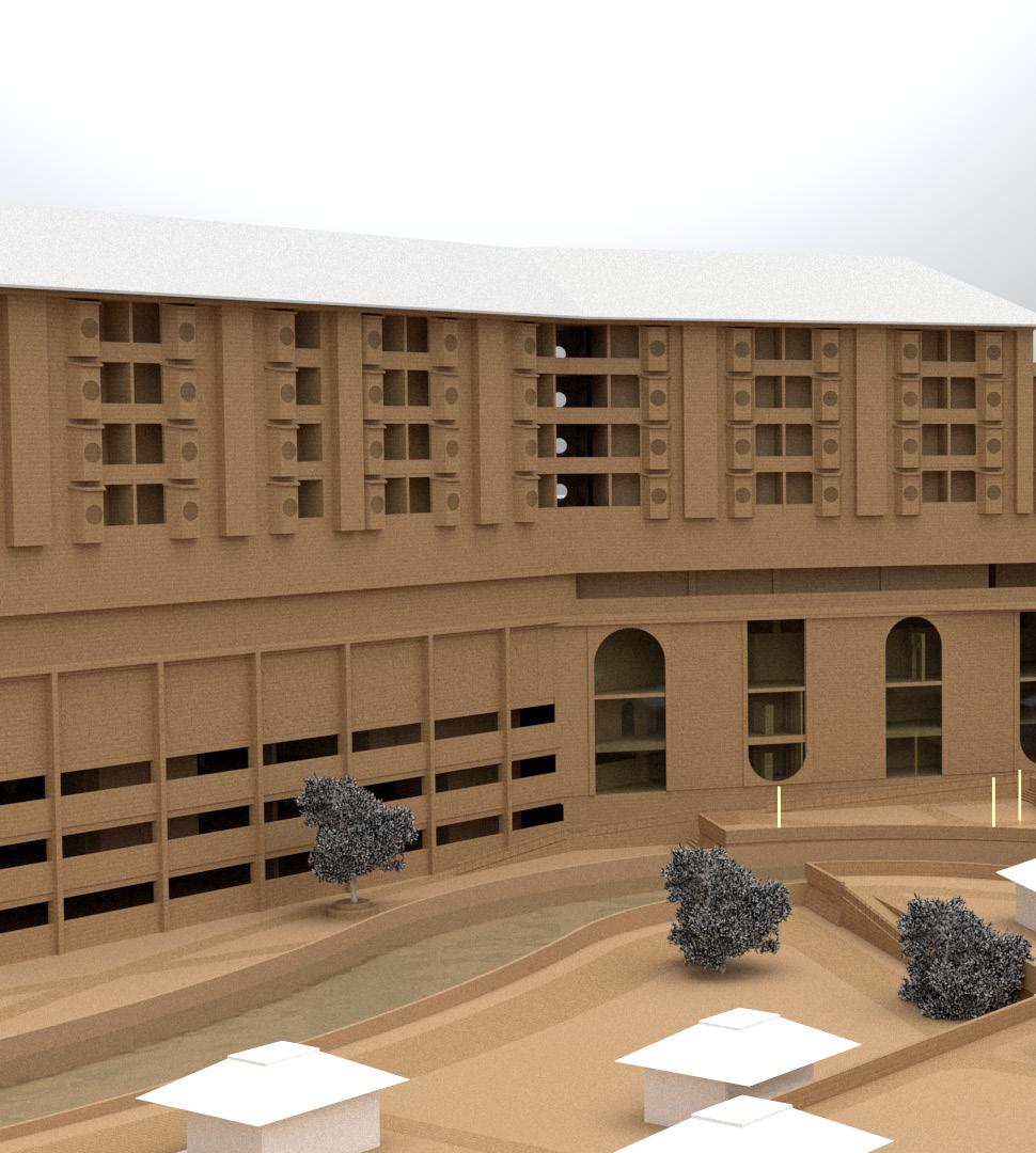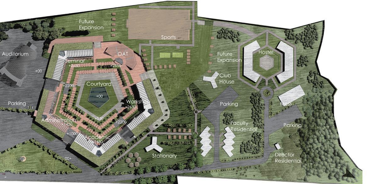 Our site is in Bhopal, Madhya Pradesh, and the design brief called for the creation of a national institute of design.It was about 27 acres, where 10 acres were for future expansion, and had a slope where the maximum slope was 9.5 m and a minimum of 3.5 m. Because Bhopal’s climate is hot and arid, courtyards are created within the institute, which generates a microclimate. and a significant temperature drop can be seen. The zoning connects the administration, academic block, workshops, seminars, and a library. and an oat is created between the sites as the centre of focus.