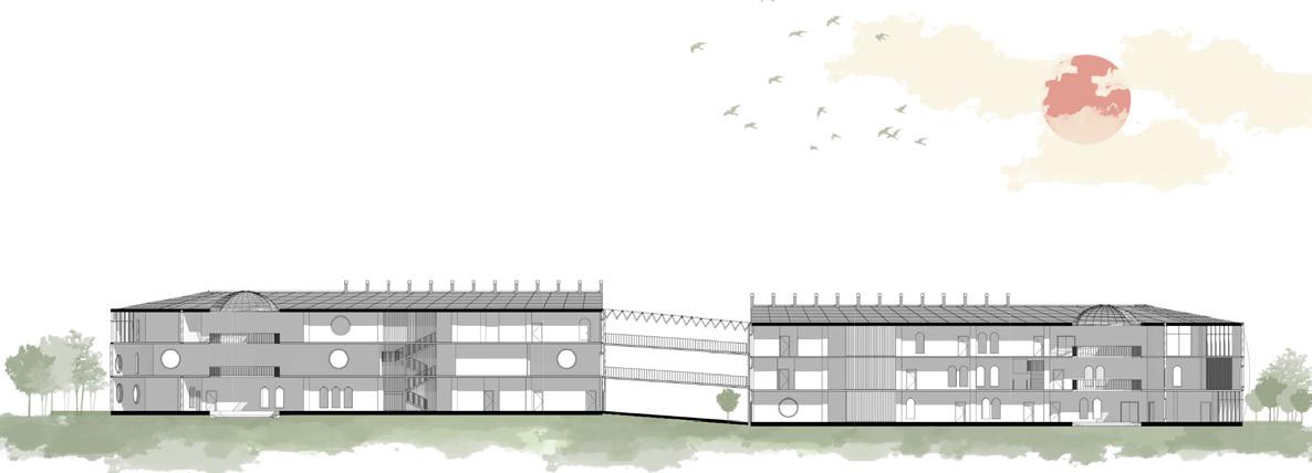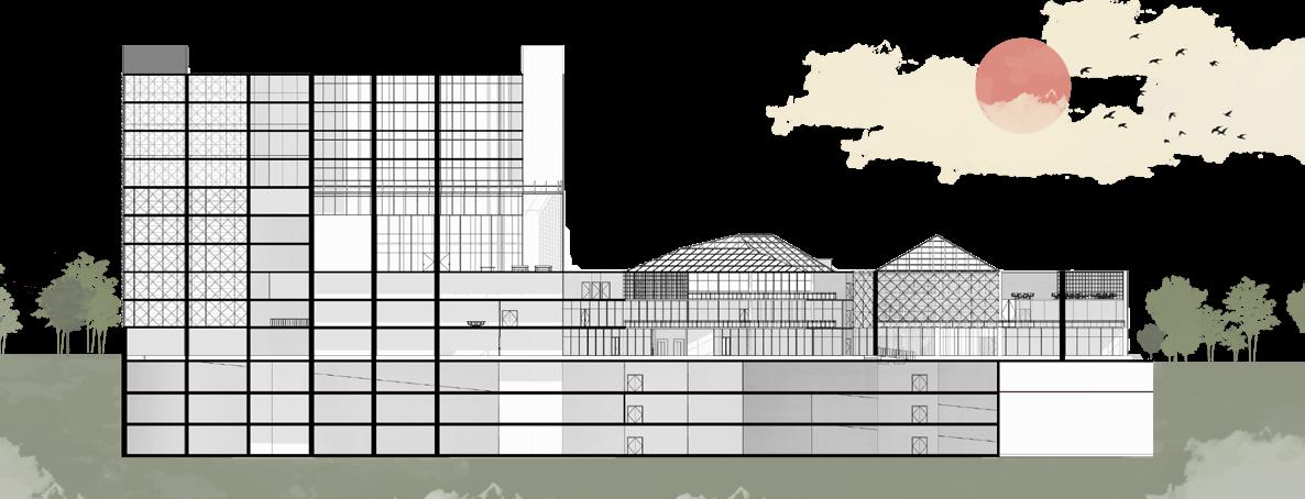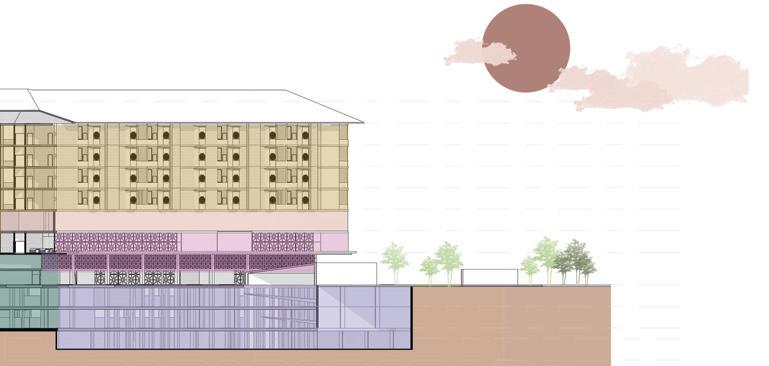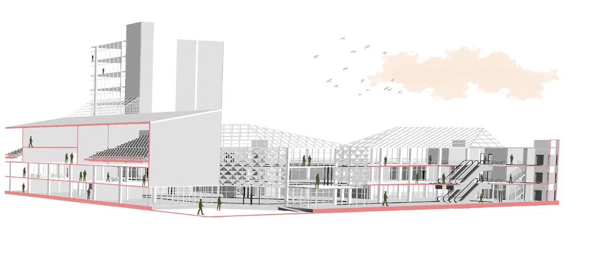 both wings are connected at ipt level with the help of interacting spaces and retail spaces