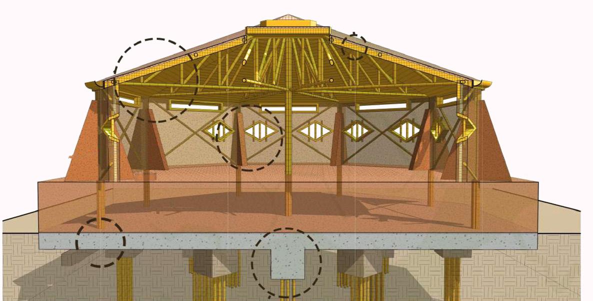 COLUMN FOOTING SOIL CLAY ROOFING TILE BAMBOO LAMINATED ROOF LAYERS