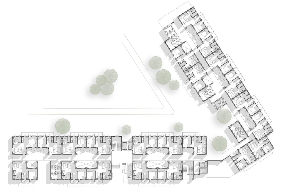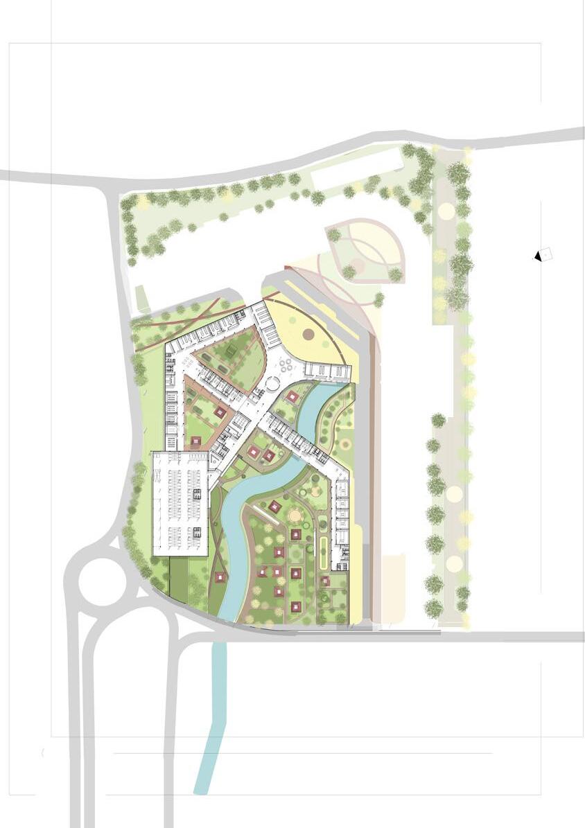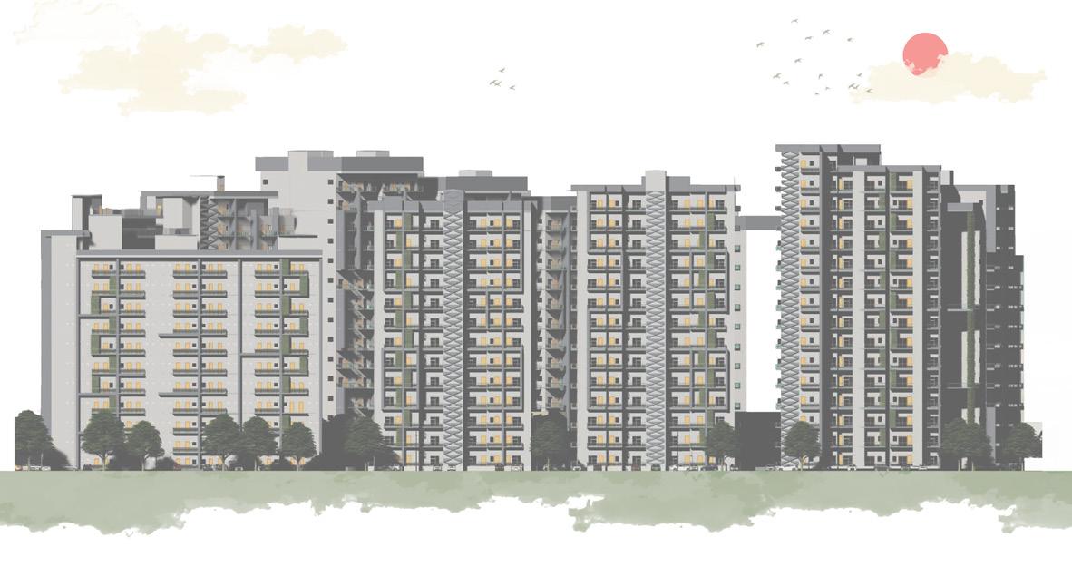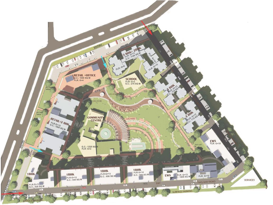 2 and 3 bhk were placed in such a manner so that it will get maximum frontage where as EWS and 1bhk are placed at the other side and central courtyard is created and gradual slope in heights.