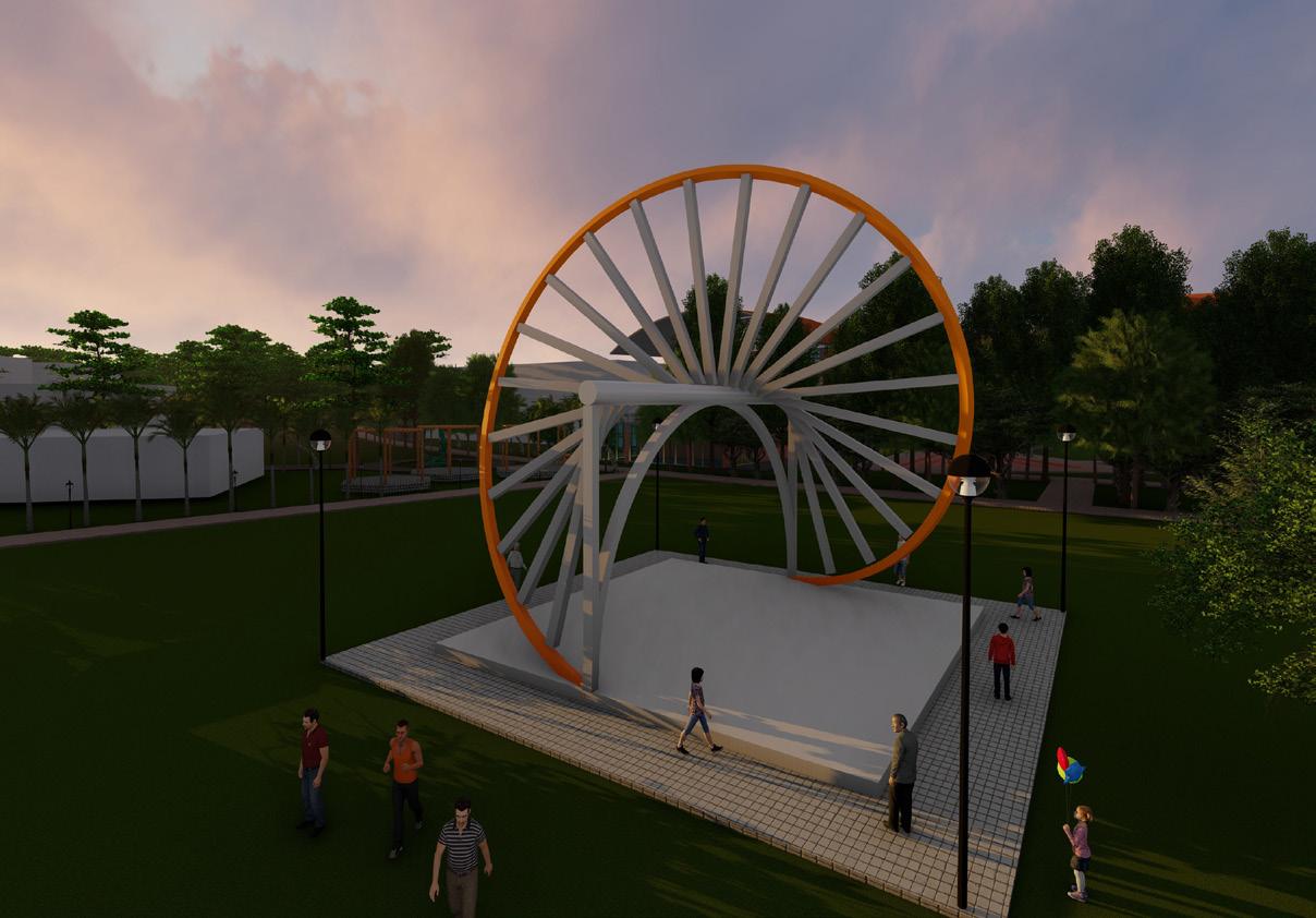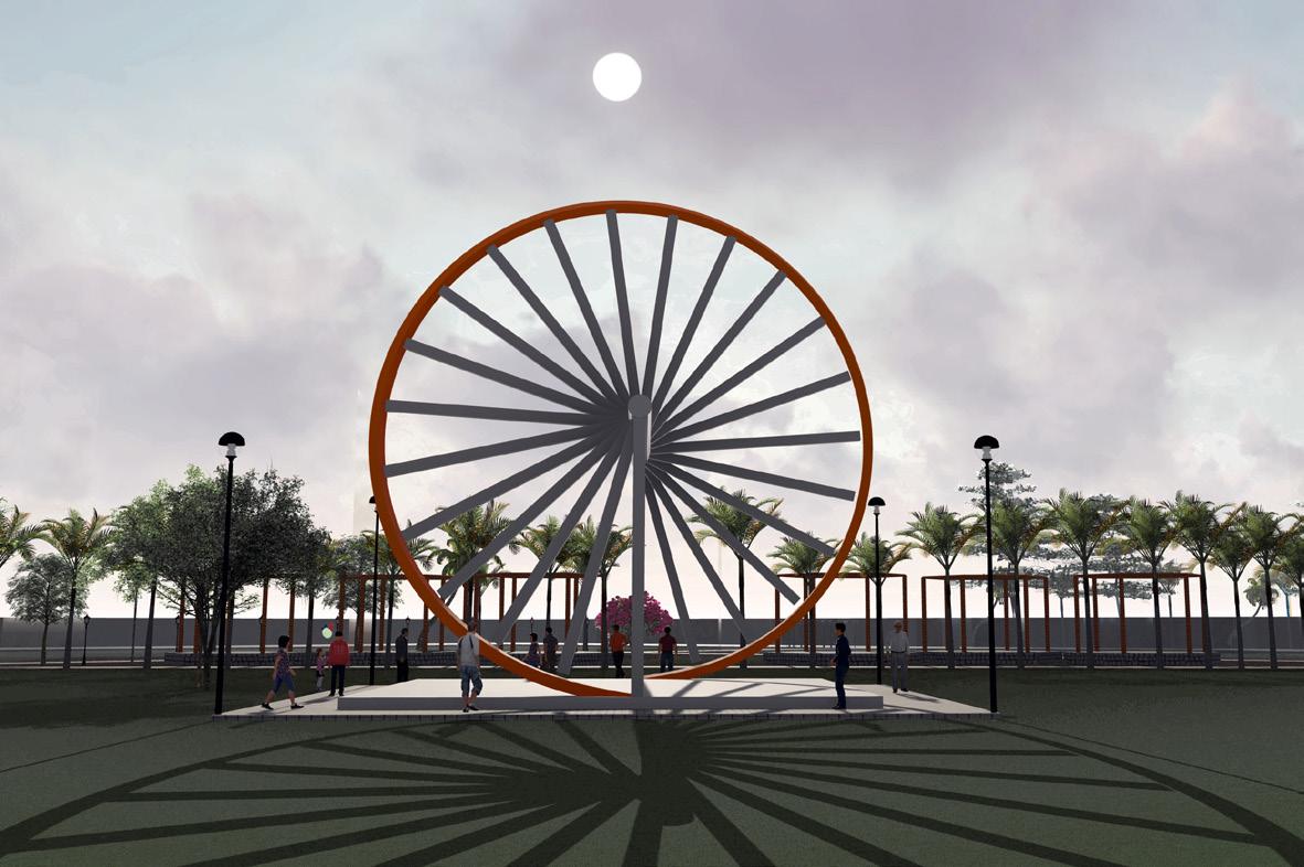 the sculpture was made to reflect the Ashoka chakra, a growth symbol and a unity symbol in diffrent views and interpretations