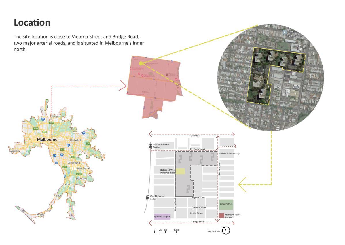The site location is close to Victoria Street and Bridge Road, two major arterial roads, and is in Melbourne’s inner north.