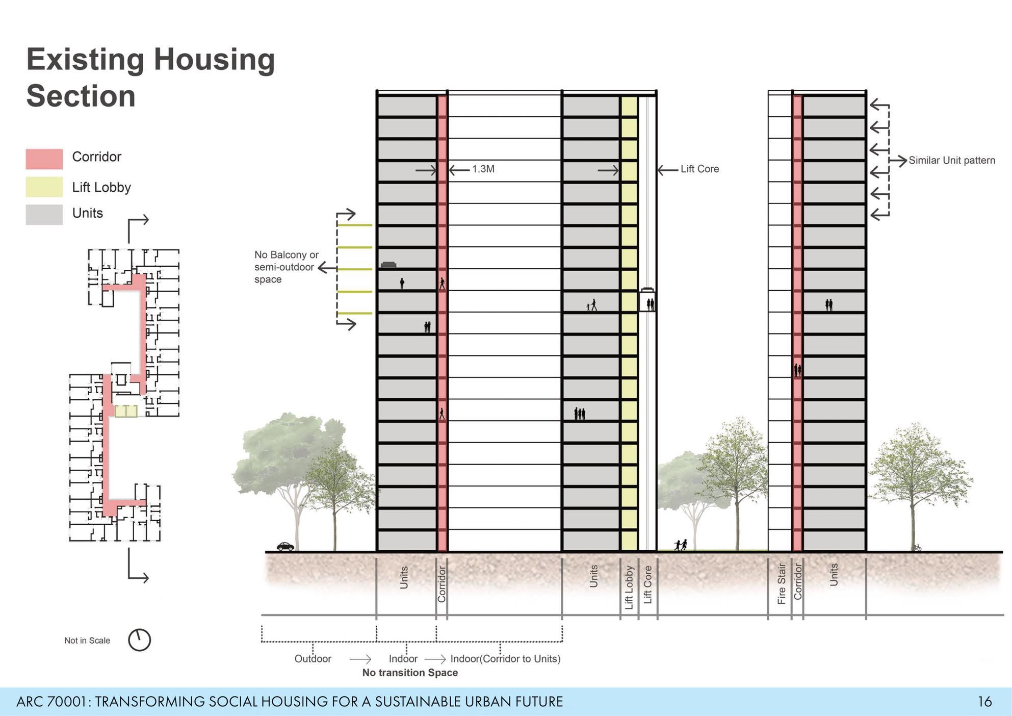 The redesigned plan focuses on spatial diversity and improved livability. Without altering any structural walls, the proposalintroduces studio, one-bedroom, and four-bedroom units, expanding the range of dwelling options. The new configuration integrates semi-outdoor spaces and extended corridors, enhancing natural ventilation, community interaction, and a stronger sense of connection between indoor and outdoor environments.