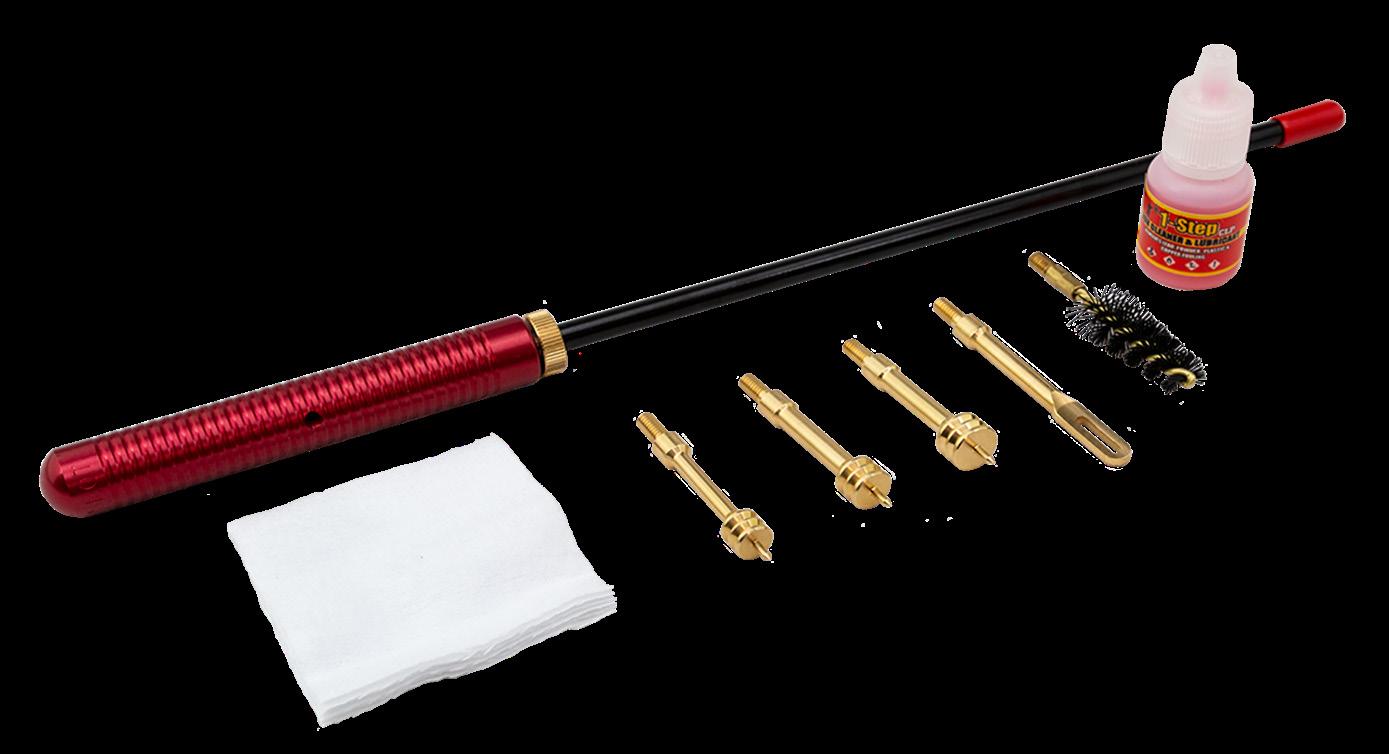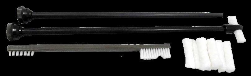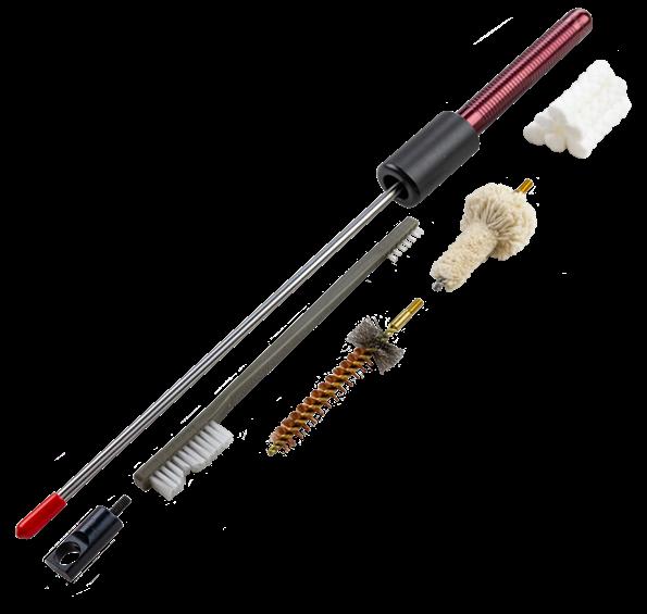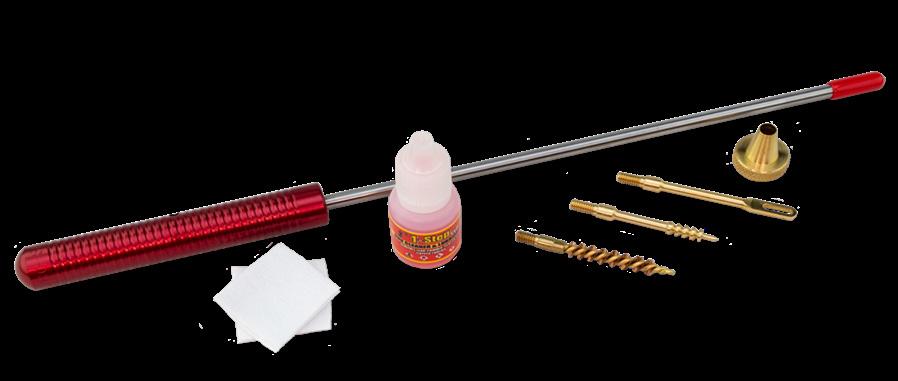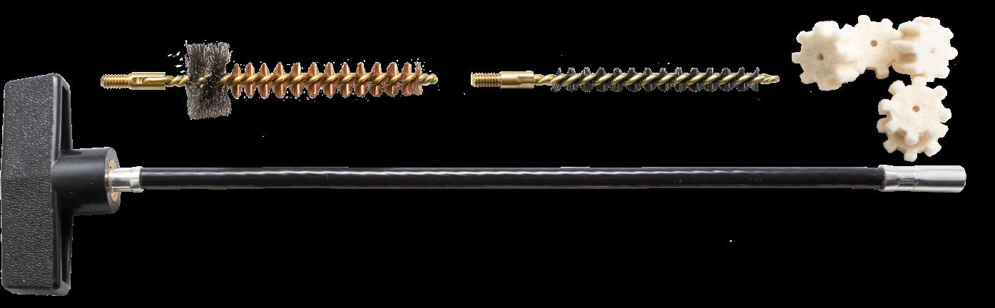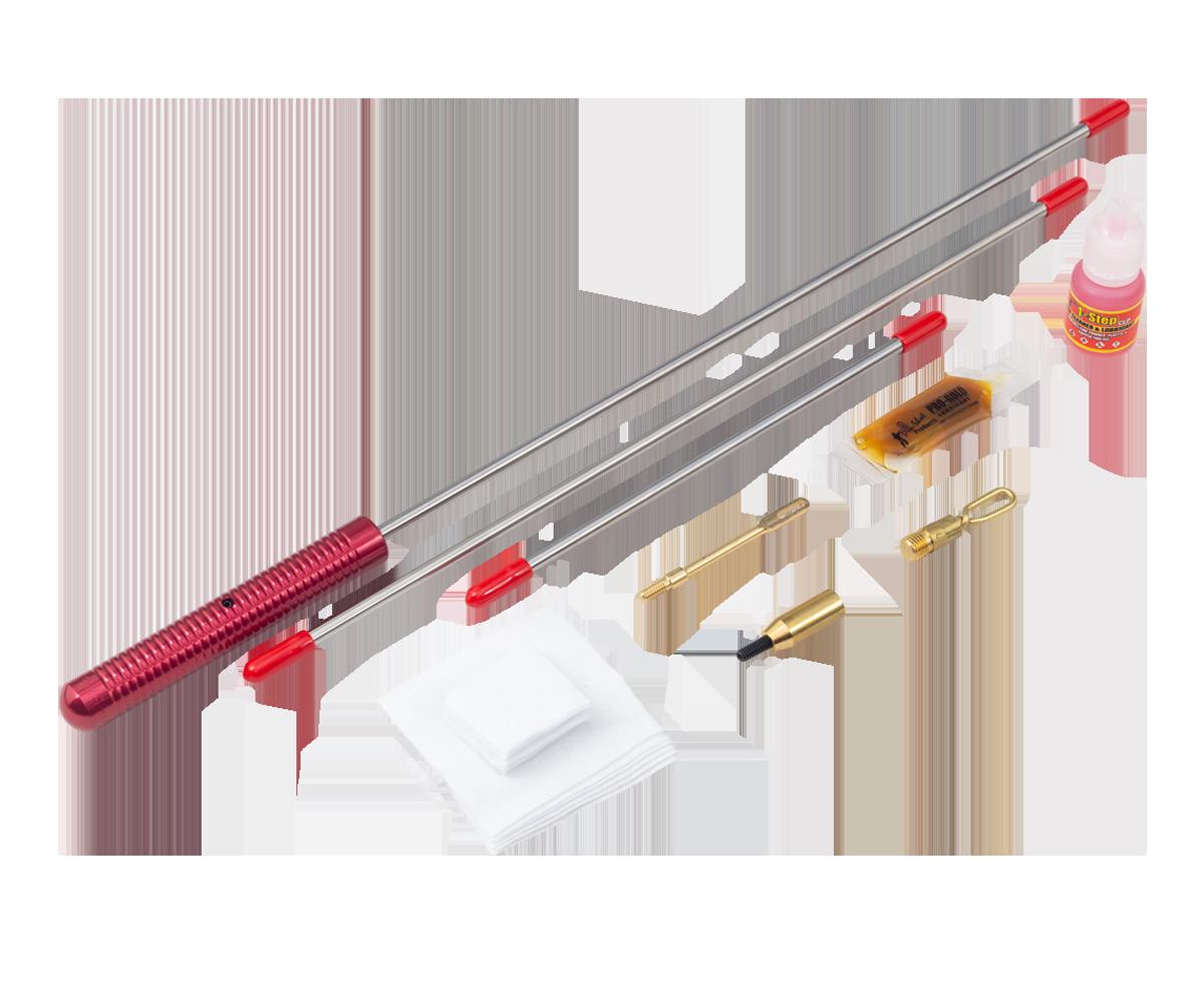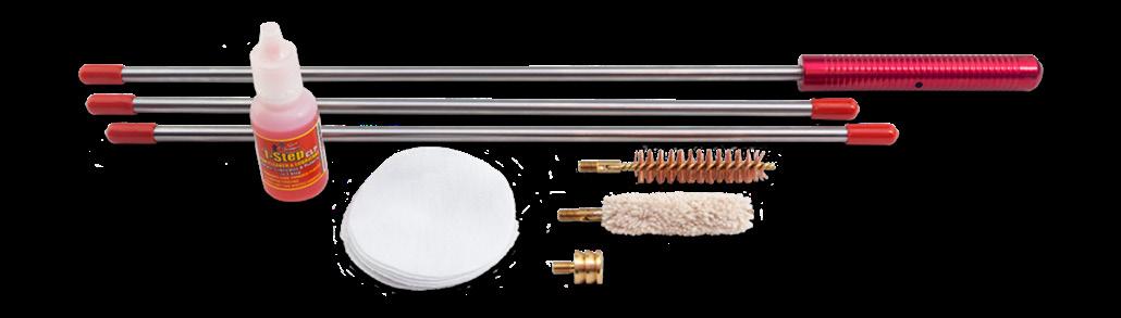 Includes 3 Piece 36” Working Length Stainless Micro-Polished Rod Sections with Swivel handle, Bore Cleaner, 1 Step CLP Bore Brush, Bore Mop, Button Style Jag, and Cleaning patches