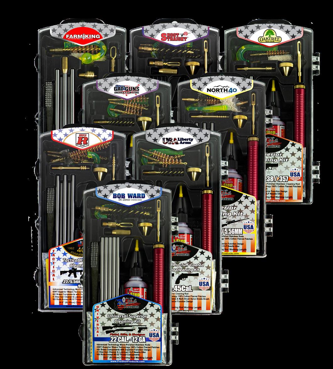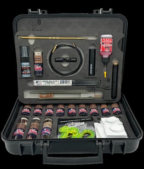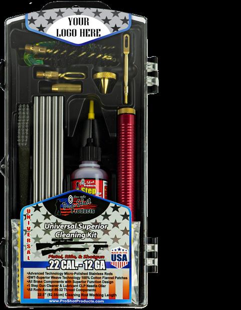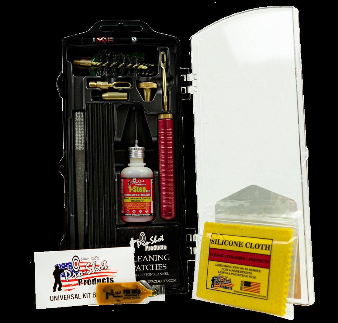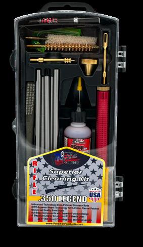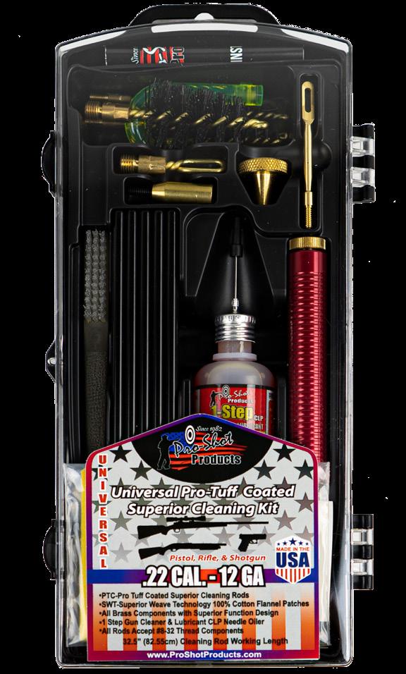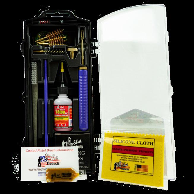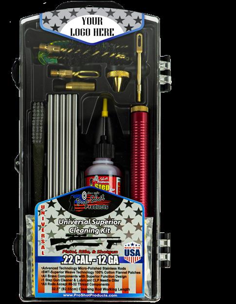 Includes 3 Piece 36” Working Length Stainless Micro-Polished Rod Sections with Swivel handle, Bore Cleaner, 1 Step CLP Bore Brush, Bore Mop, Button Style Jag, and Cleaning patches