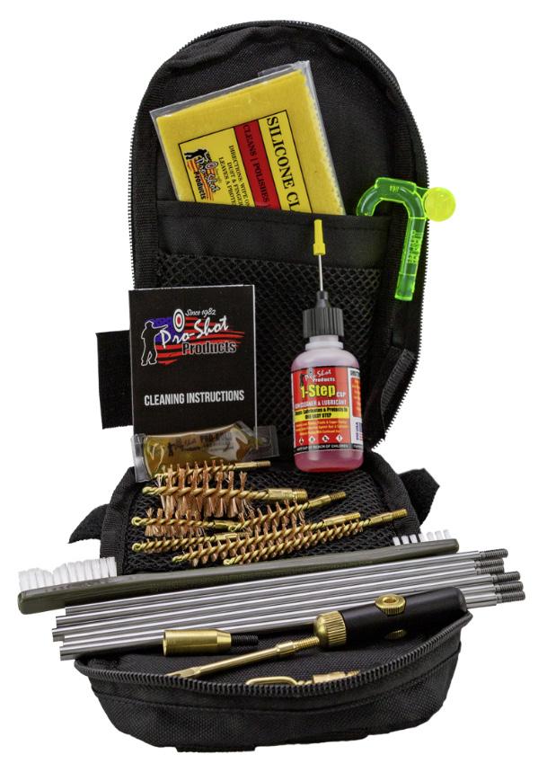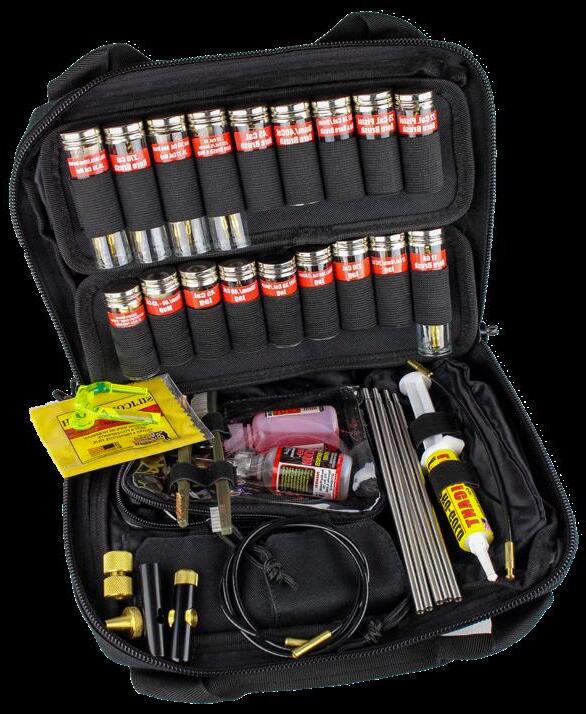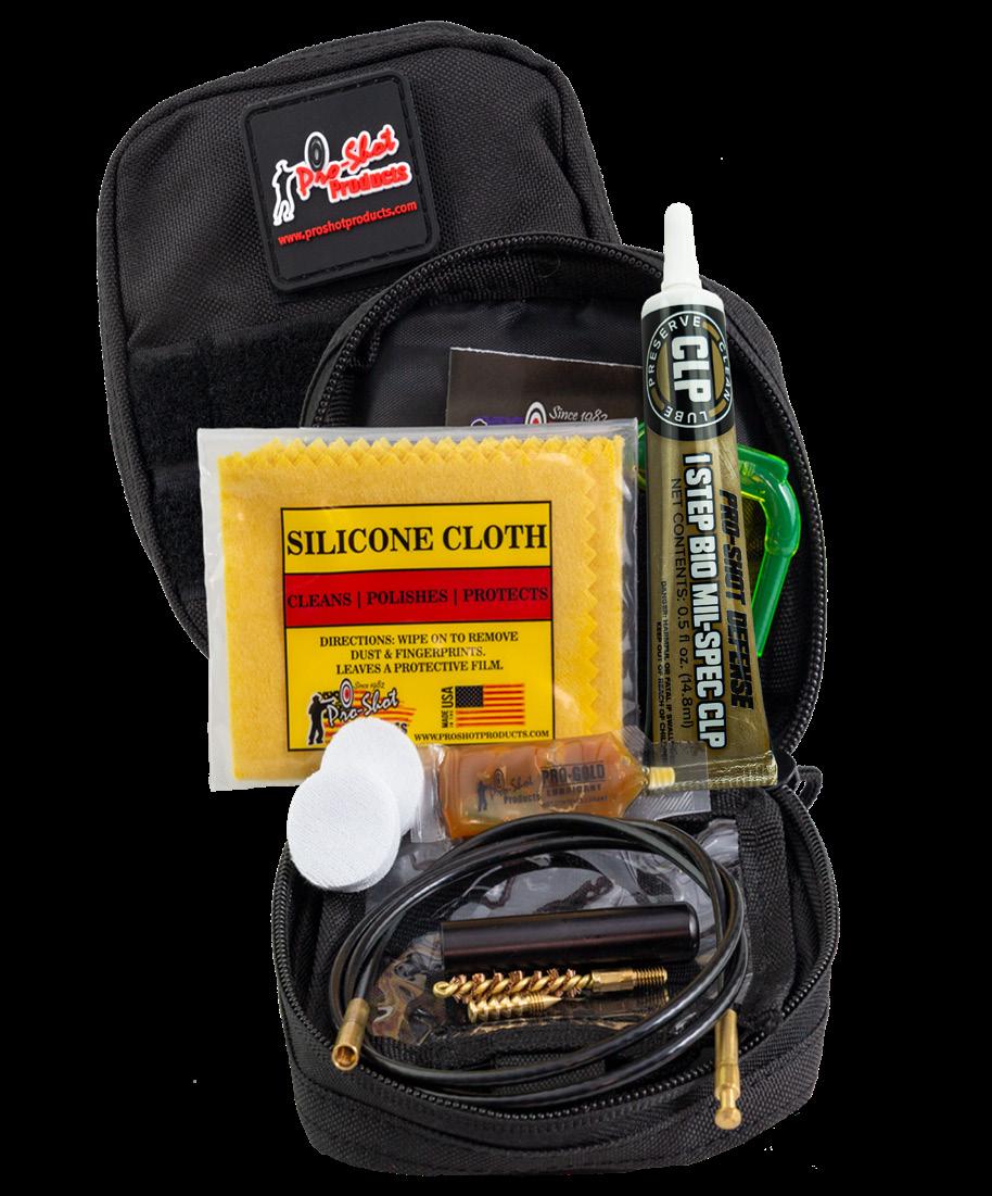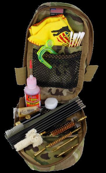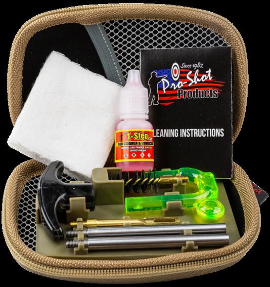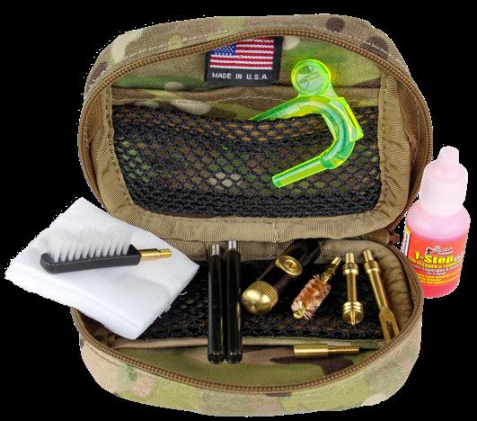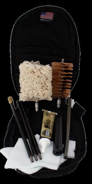 Excellent for range bags and ruck packs. Compact, lightweight, and includes all components to clean 9mm Pistol and