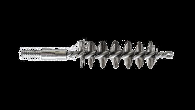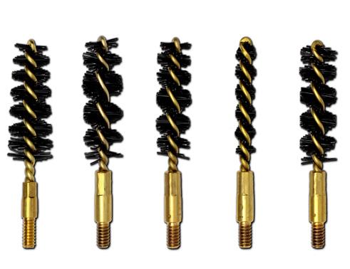Pro-Shot’s black powder brushes are made with a brass core, bronze bristle. The brass core is wound through the coupling to increase the brush’s life and performance. This also prevents the brush from pulling apart when reversing the brush in the barrel. # 10/32 Thread.