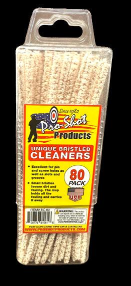 Tough Nylon bristles with absorbent cotton make these 6” pipe cleaners excellent for pin and screw holes as well as slots and grooves. The bristles will loosen fouling and dirt, while the mop absorbs the crud and removes it from the hole, slot, or groove.