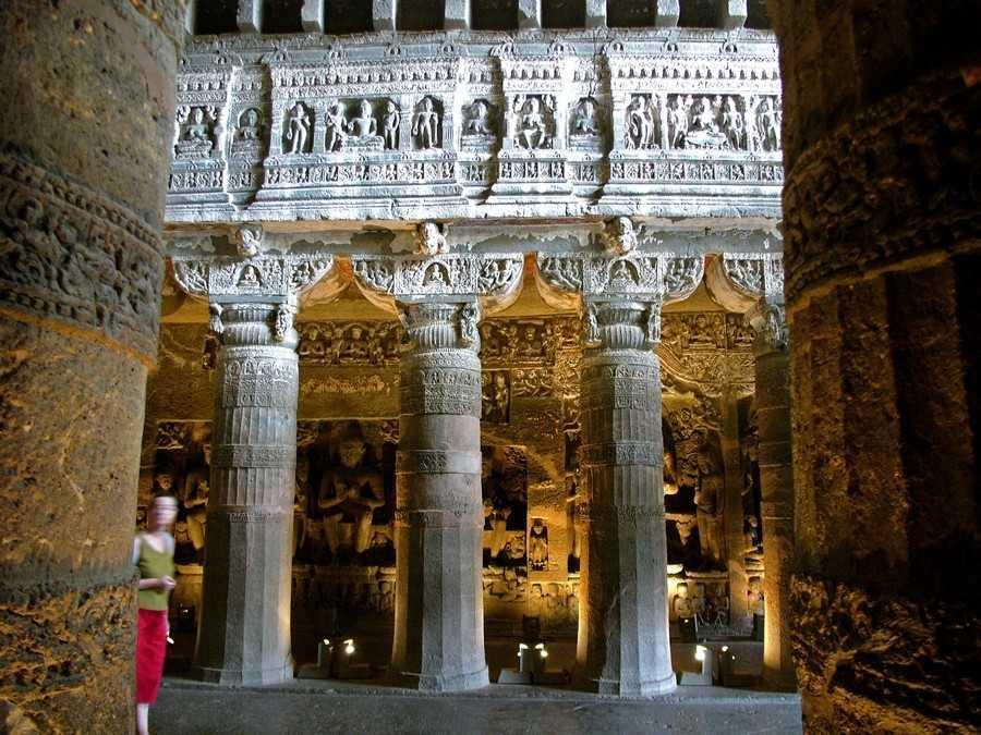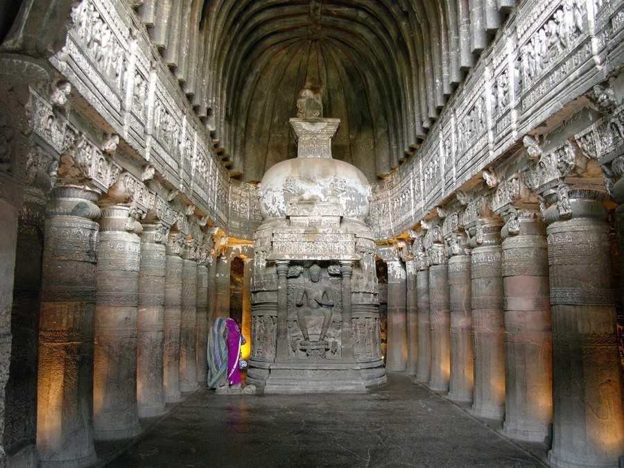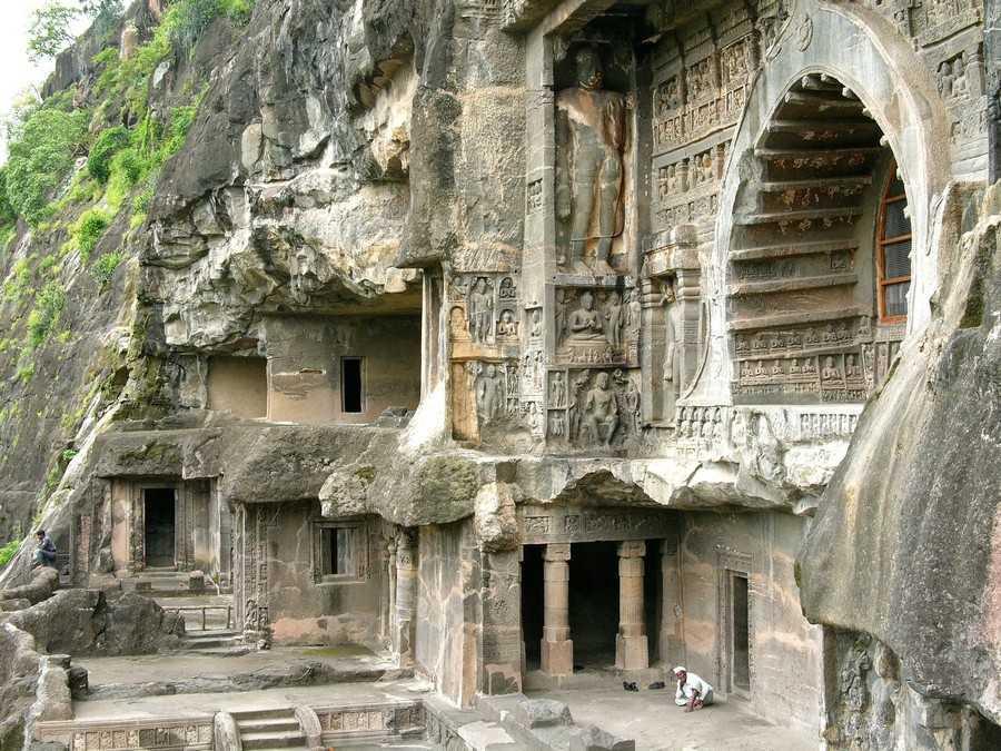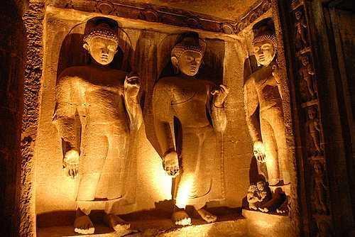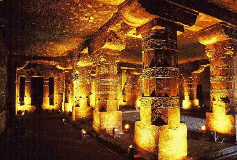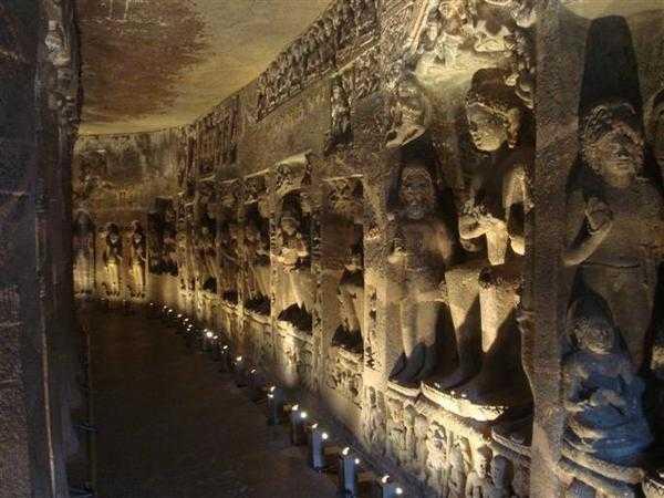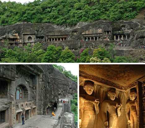 A pouco mais de duas horas da antiga cidade de Aurangabad se situam as famosas Cavernas de Ajanta, trinta e duas grutas que não são de todo naturais mas que foram talhadas nas colinas a milhares de anos por trabalhadores que apenas utilizaram cinzéis e martelos. Esculpidas na rocha vulcânica de basalto, os artesãos foram meticulosamente cinzelando pouco a pouco a rocha, Talhando as colunas em lugares estratégicos e criando vários quartos dentro da rocha. As paredes e os tetos foram maravilhosamente decorados e com aplicações de gesso criaram pinturas coloridas.