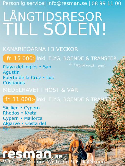 – prisvärda erbjudanden via PRO:s egen resebyrå. Tel 08-701 67 80, kl 9–16.