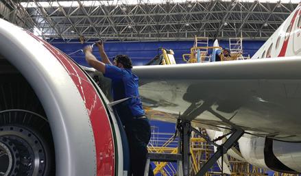 Coopesa has steadily built up an impres sive range of services. The company offers a 24/7 line maintenance service 365 days a year to help airlines keep their aircraft operating on schedule. Coopesa’s line maintenance services include transit checks, overnight checks, defects recti fication, LRU replacement and A checks. Additional services include heavy maintenance, such as C-Checks, MSG2/3 and HMV. Coopesa can conduct structural repairs, aircraft modifications and a Corrosion Prevention & Control Program (CPCP). The Coopesa package can also include painting, NDT inspections, borescope inspection, avionics modifications or upgrades and interior refurbishment. The team at Coopesa are experienced on the Airbus 320 family, plus the Embraer E170 and E190 airliners manufactured in Brazil. Boeing aircraft are a speciality at Coopesa, notably the 737CL, 737NG/MAX and 757 aircraft. The company enjoys dual certification, conducting operations in compliance with either FAA or EASA.