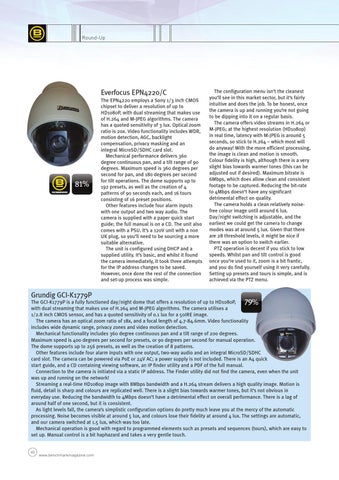 The GCI-K1779P is a fully functioned day/night dome that offers a resolution of up to HD1080P, 79% with dual streaming that makes use of H.264 and M-JPEG algorithms. The camera utilises a 1/2.8 inch CMOS sensor, and has a quoted sensitivity of 0.1 lux for a 50IRE image. The camera has an optical zoom ratio of 18x, and a focal length of 4.7-84.6mm. Video functionality includes wide dynamic range, privacy zones and video motion detection. Mechanical functionality includes 360 degree continuous pan and a tilt range of 200 degrees. Maximum speed is 400 degrees per second for presets, or 90 degrees per second for manual operation. The dome supports up to 256 presets, as well as the creation of 8 patterns. Other features include four alarm inputs with one output, two-way audio and an integral MicroSD/SDHC card slot. The camera can be powered via PoE or 24V AC; a power supply is not included. There is an A4 quick start guide, and a CD containing viewing software, an IP finder utility and a PDF of the full manual. Connection to the camera is initiated via a static IP address. The Finder utility did not find the camera, even when the unit was up and running on the network! Streaming a real-time HD1080p image with 8Mbps bandwidth and a H.264 stream delivers a high quality image. Motion is fluid, detail is sharp and colours are replicated well. There is a slight bias towards warmer tones, but it’s not obvious in everyday use. Reducing the bandwidth to 4Mbps doesn’t have a detrimental effect on overall performance. There is a lag of around half of one second, but it is consistent. As light levels fall, the camera’s simplistic configuration options do pretty much leave you at the mercy of the automatic processing. Noise becomes visible at around 5 lux, and colours lose their fidelity at around 4 lux. The settings are automatic, and our camera switched at 1.5 lux, which was too late. Mechanical operation is good with regard to programmed elements such as presets and sequences (tours), which are easy to set up. Manual control is a bit haphazard and takes a very gentle touch.