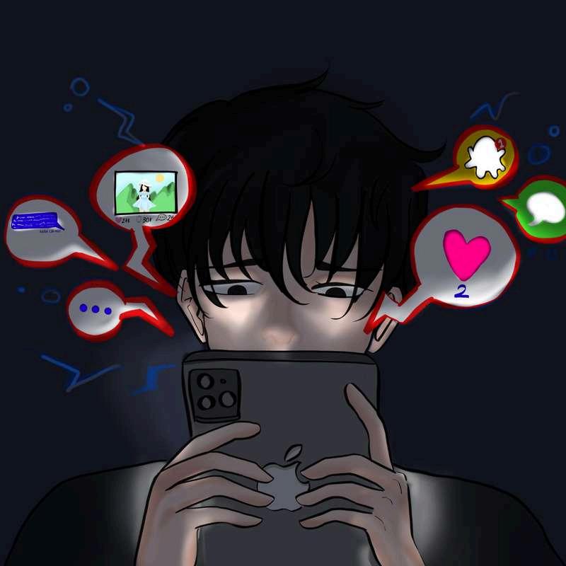 The image illustrates the pressure that young men face in a society where fame on the internet, likes, and comments are frequently used as indicators of acceptance by others. As the girl's post, which embodies normal expectations of success or attractiveness, receives thousands of likes, the teenage boy feels abandoned and begins to doubt his own worth.