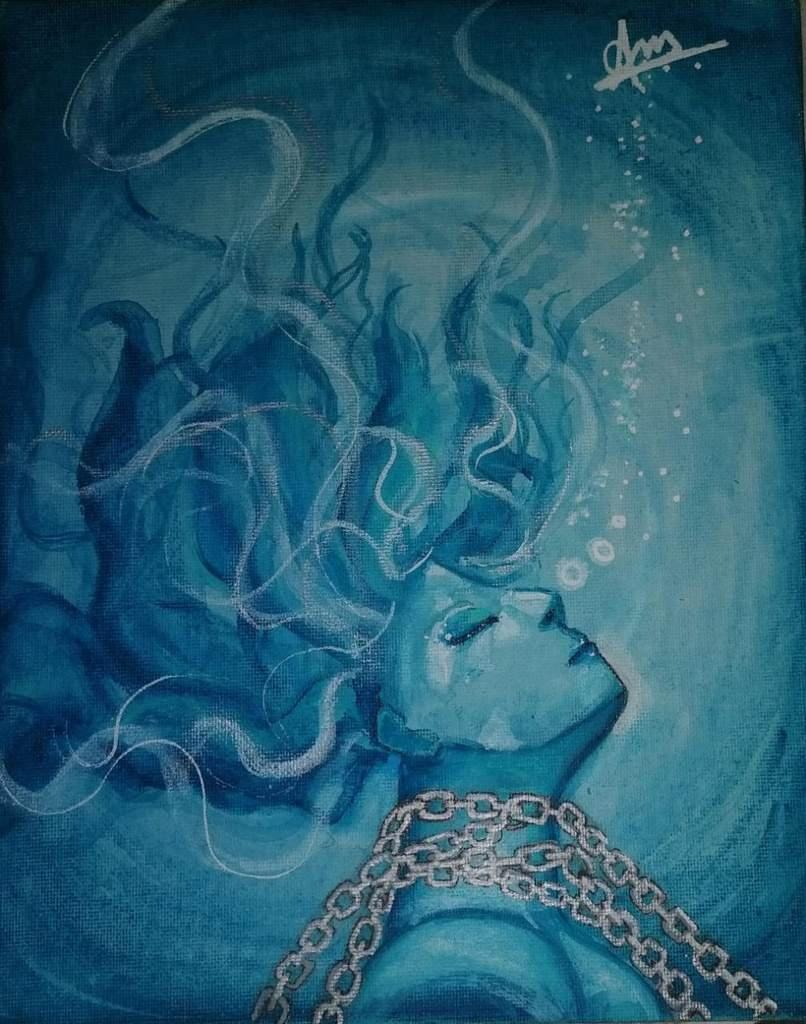 The piece was created to visualize the internal battles that adolescents may endure, often feeling trapped or suffocated by the demands and changes during this critical phase of life. The underwater setting emphasizes the sense of isolation and the difficulty of reaching out for help, highlighting the need for awareness and support during this vulnerable period.