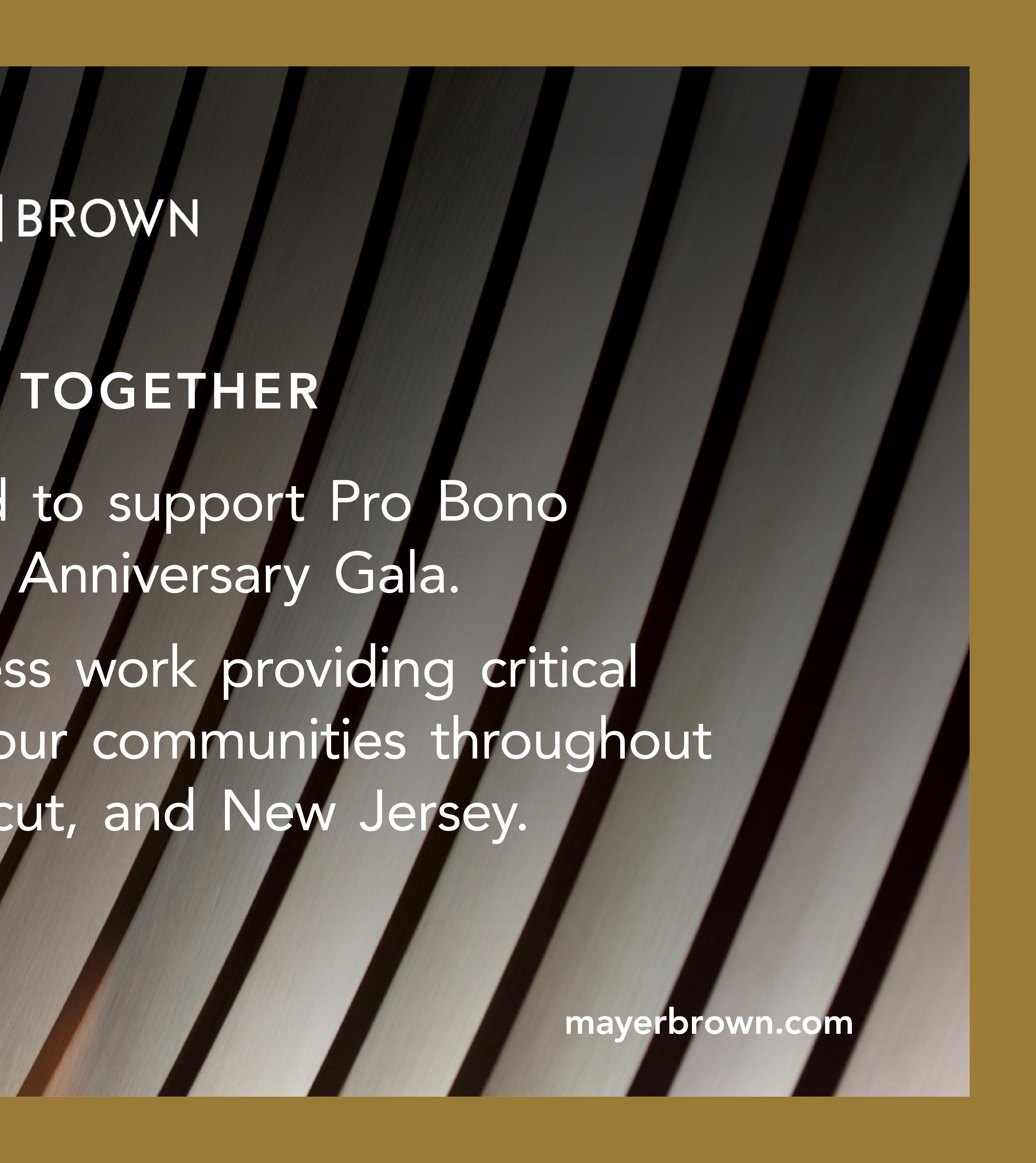 Pro bono work is transformative, and tonight we celebrate that impact with our partners at leading corporations, law rms, and scores of individuals who share our values and our vision.