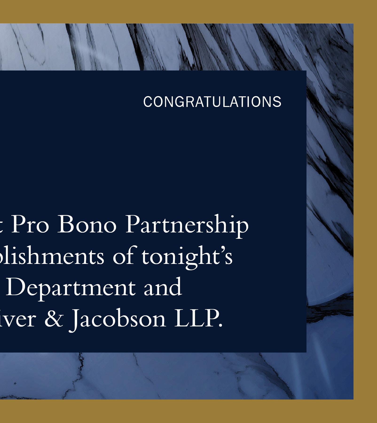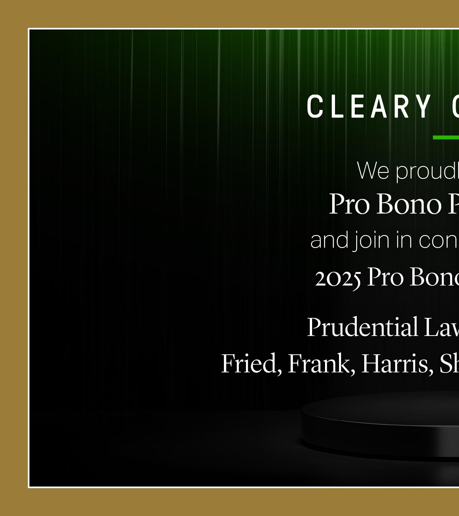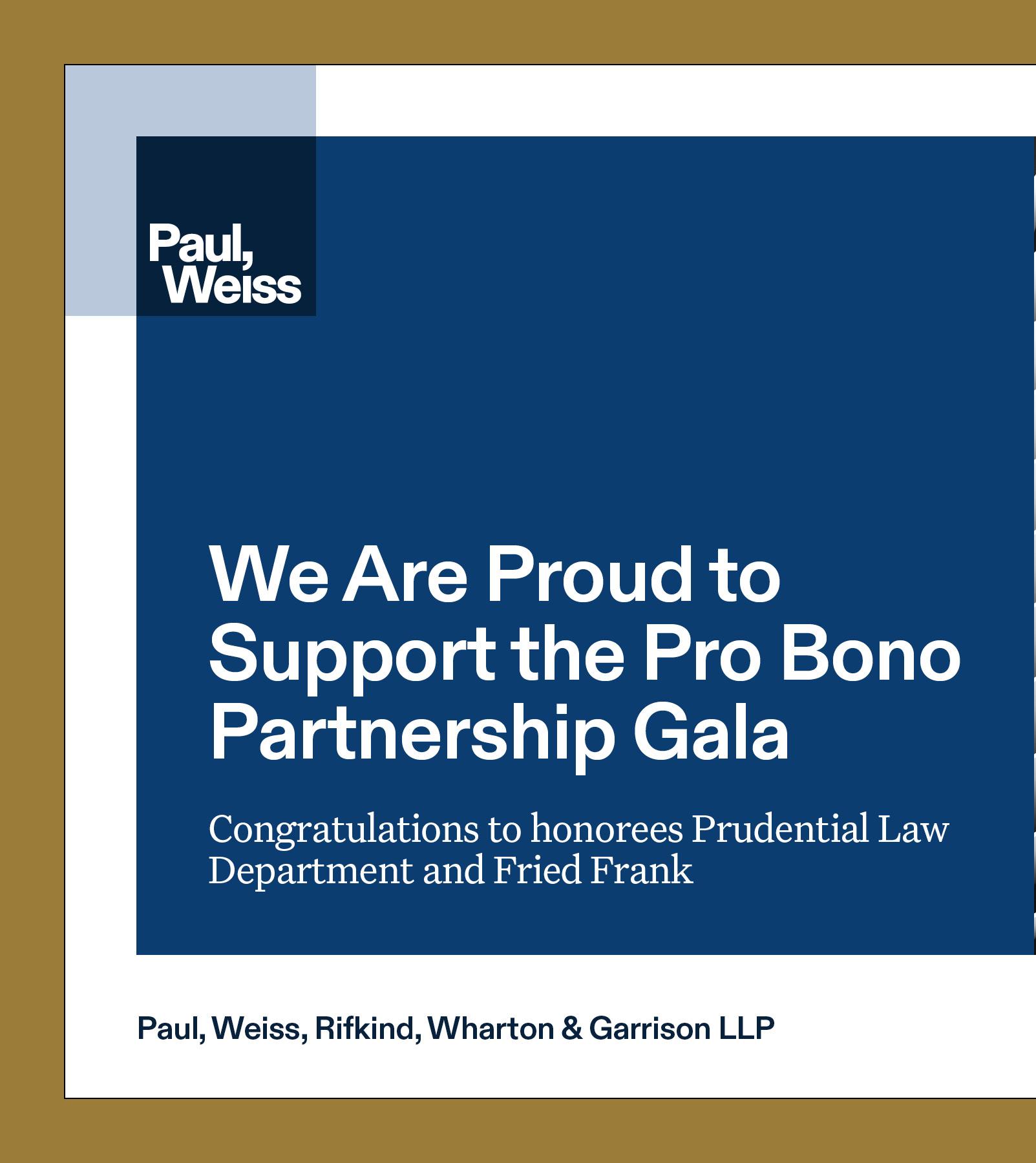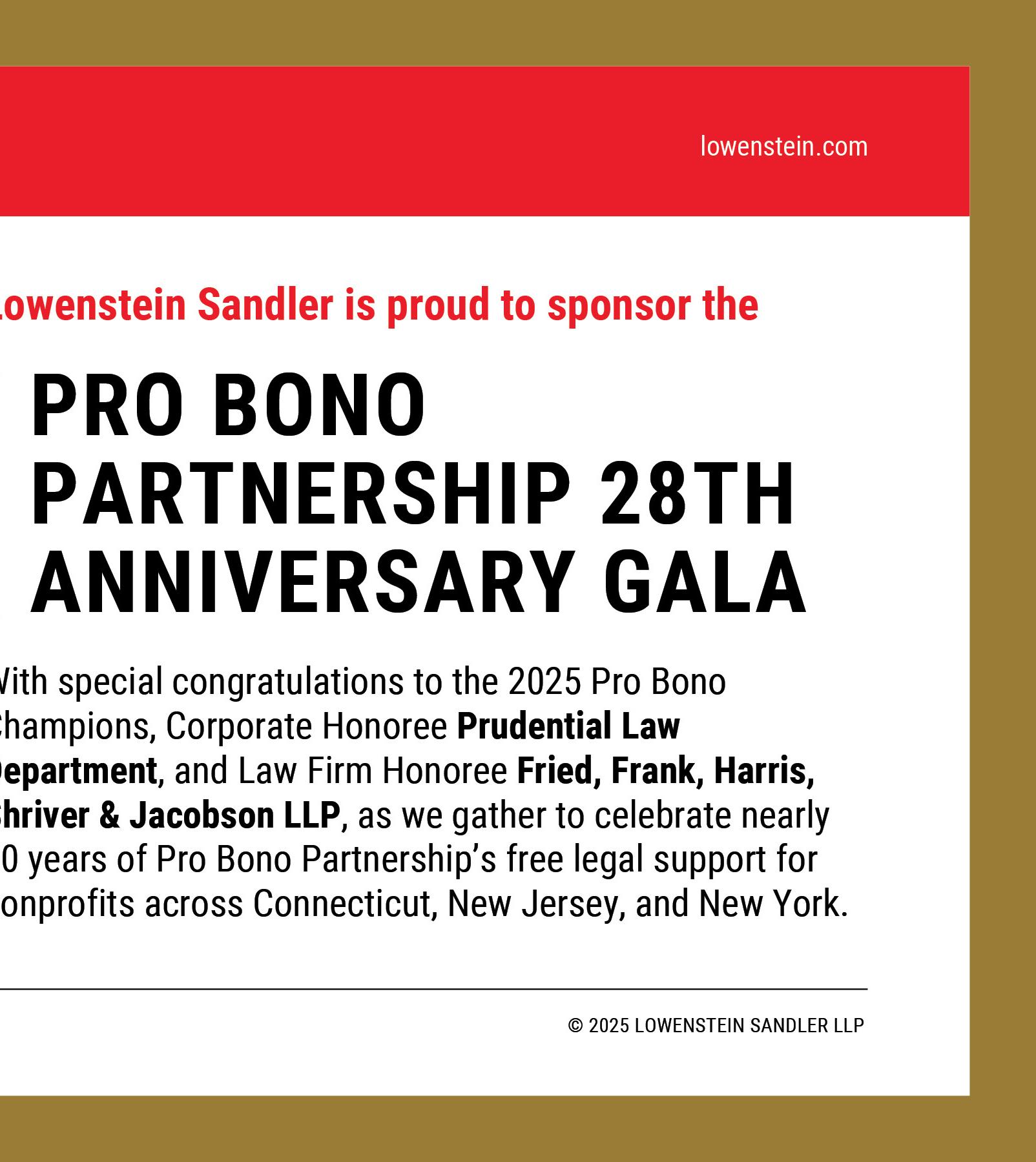 At the heart of this effort are our 2025 Pro Bono Champions, Fried Frank and the Prudential Law Department. These longtime supporters are deeply committed to pro bono work, and to advancing the Partnership’s mission. They set a powerful example for what can be accomplished when we work together in service of others.