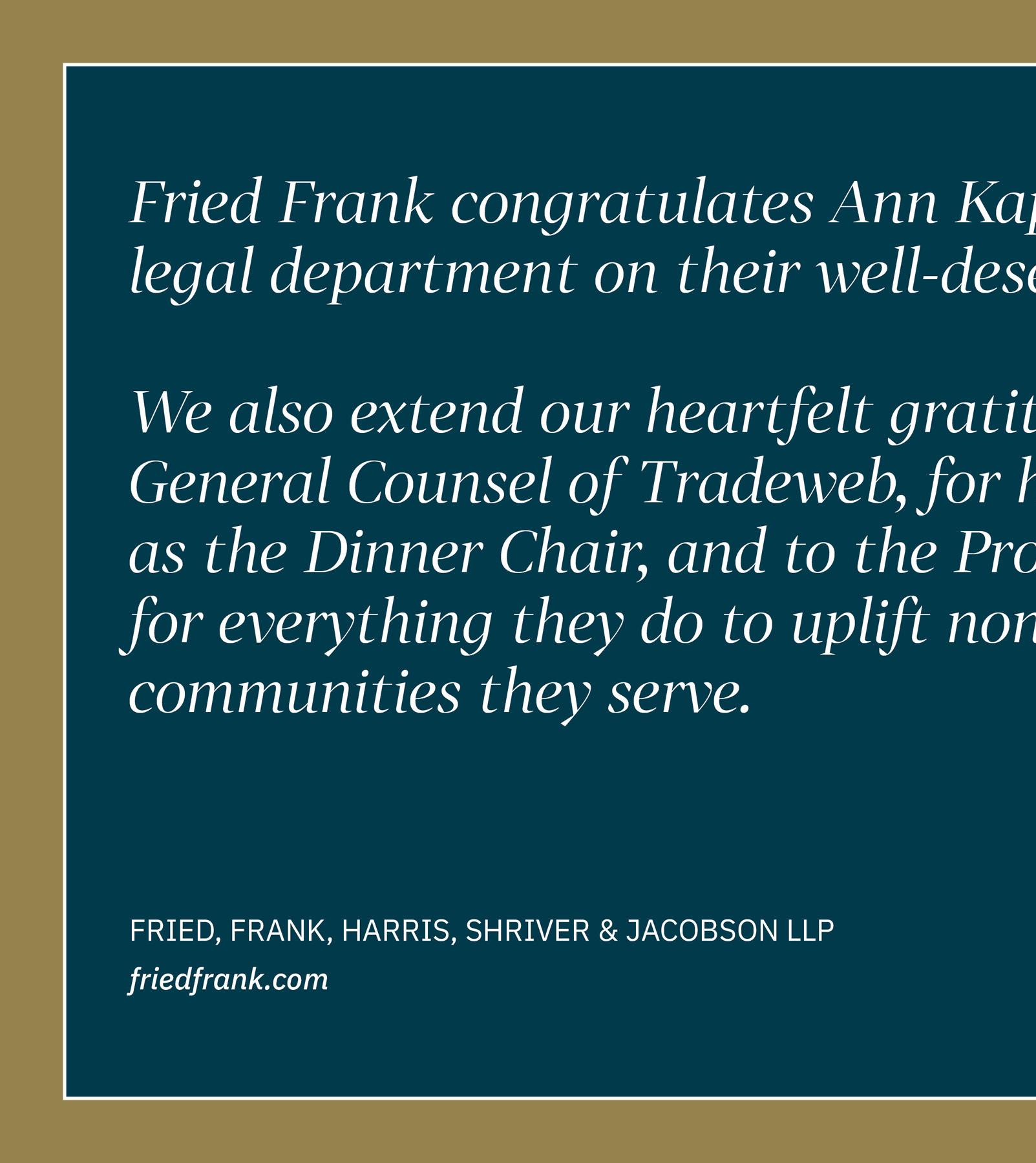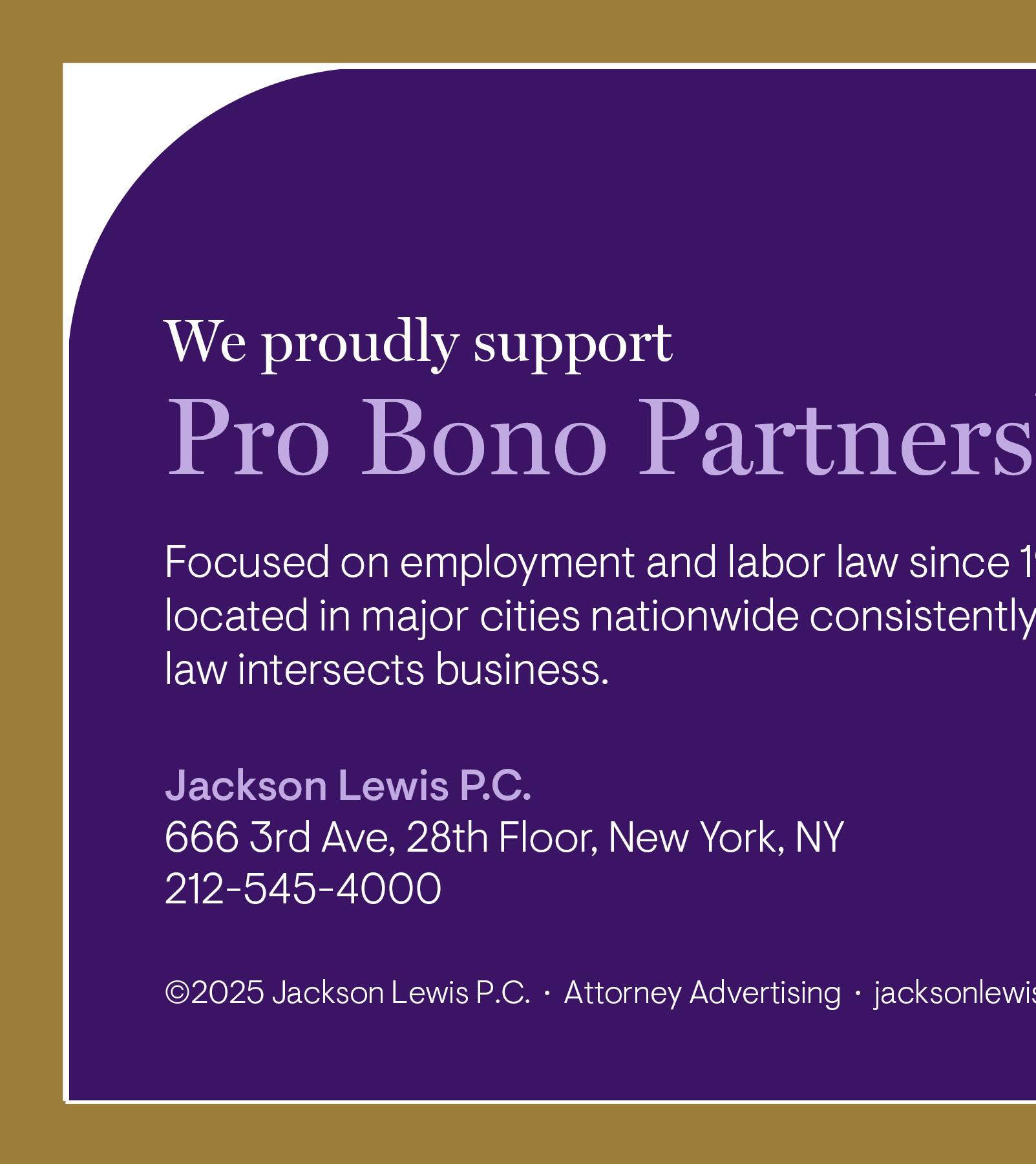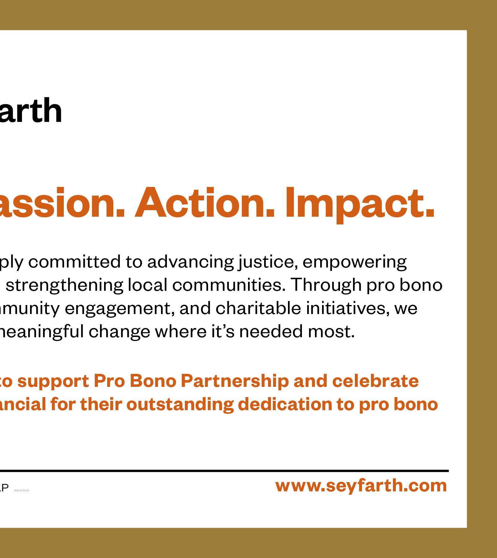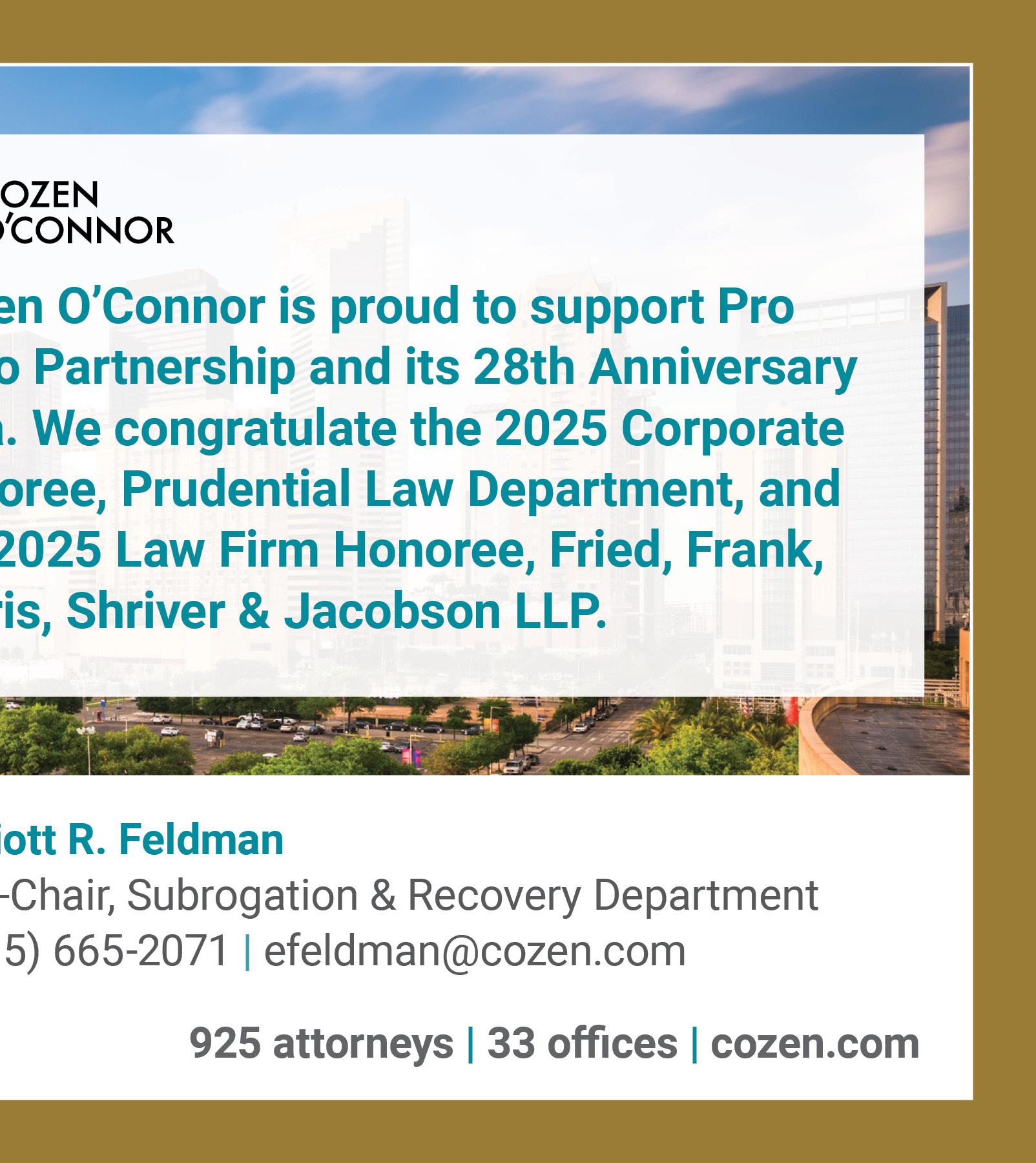 At the heart of this effort are our 2025 Pro Bono Champions, Fried Frank and the Prudential Law Department. These longtime supporters are deeply committed to pro bono work, and to advancing the Partnership’s mission. They set a powerful example for what can be accomplished when we work together in service of others.