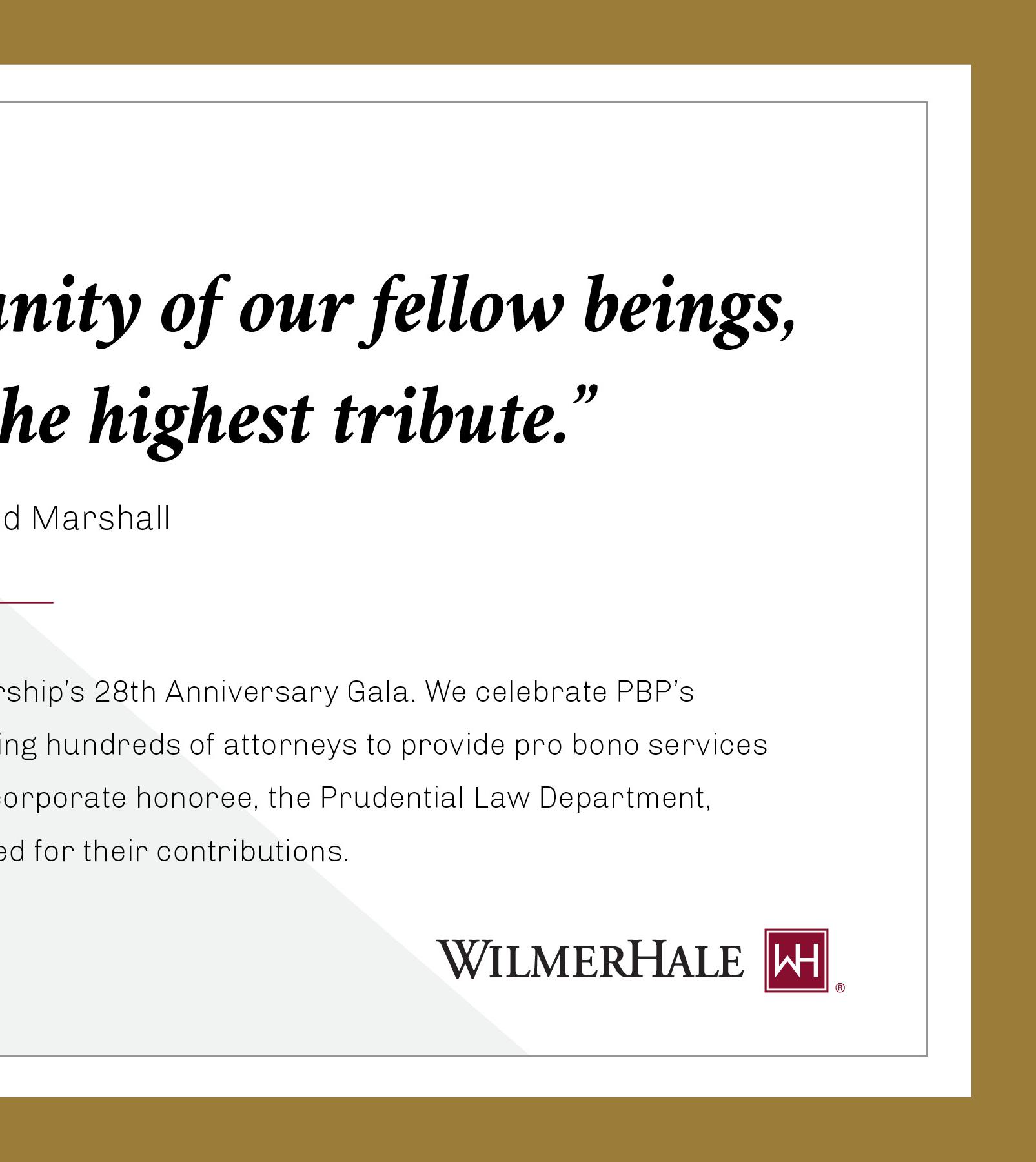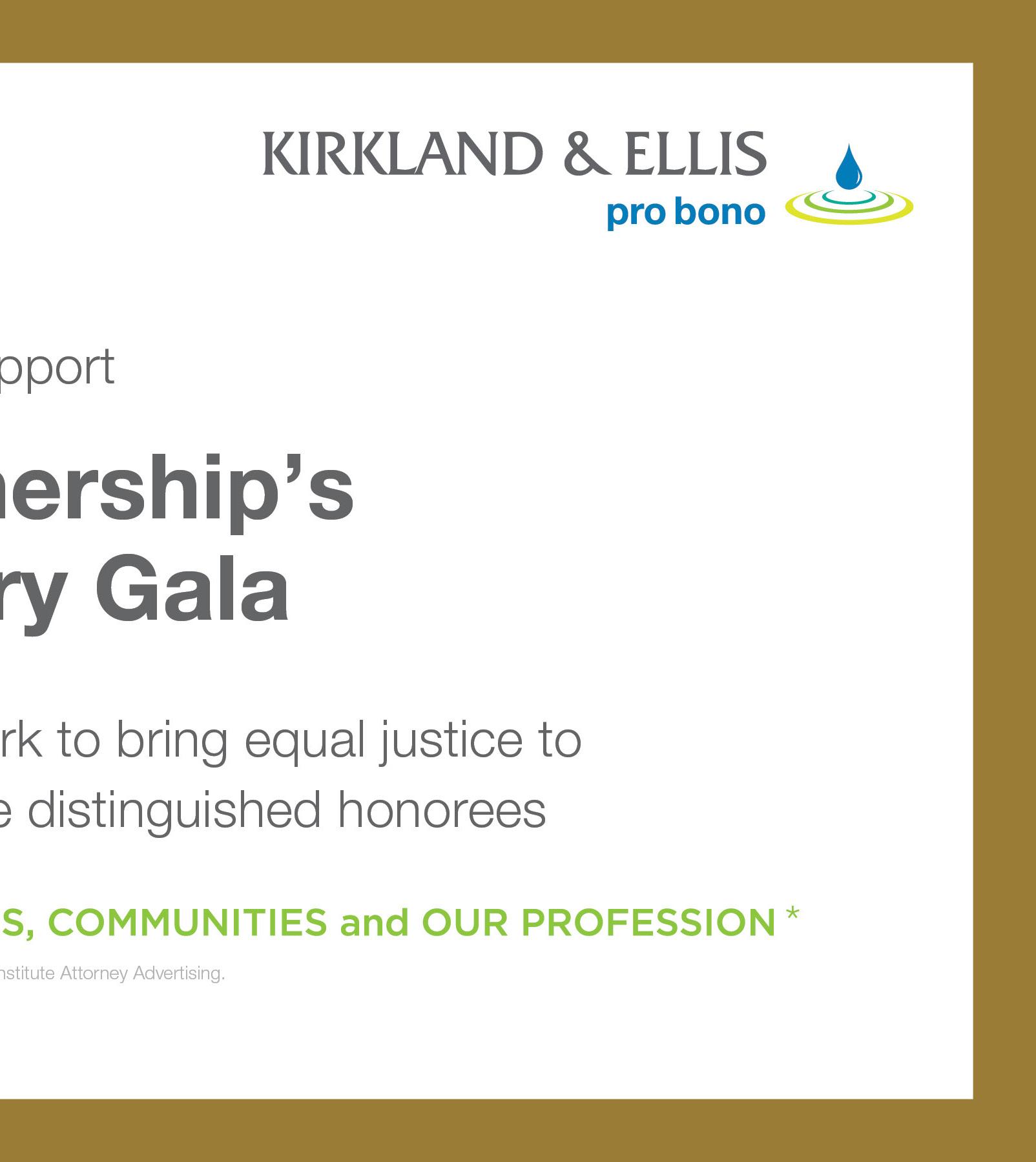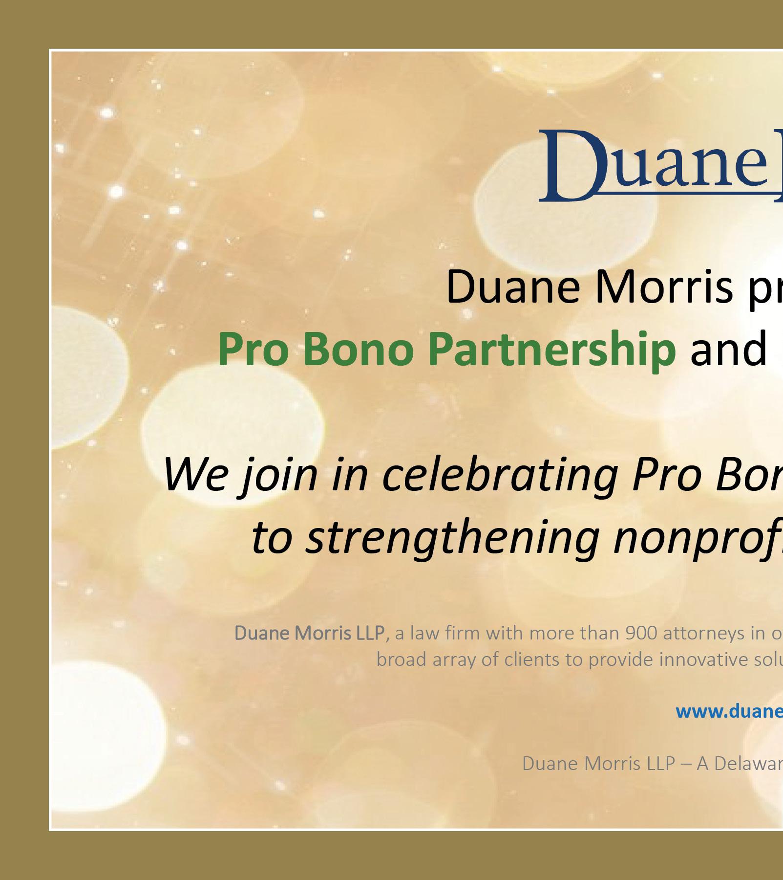This celebration honors you, our partners at leading corporations and law firms, and the many individuals who share our values, vision, and commitment to action. With your help, the Partnership provides direct, expert legal services to our nonprofit clients by recruiting and supporting 1,500 volunteer lawyers each year, as well as offers timely and relevant educational opportunities and an accessible legal resource hotline to the entire nonprofit sector.