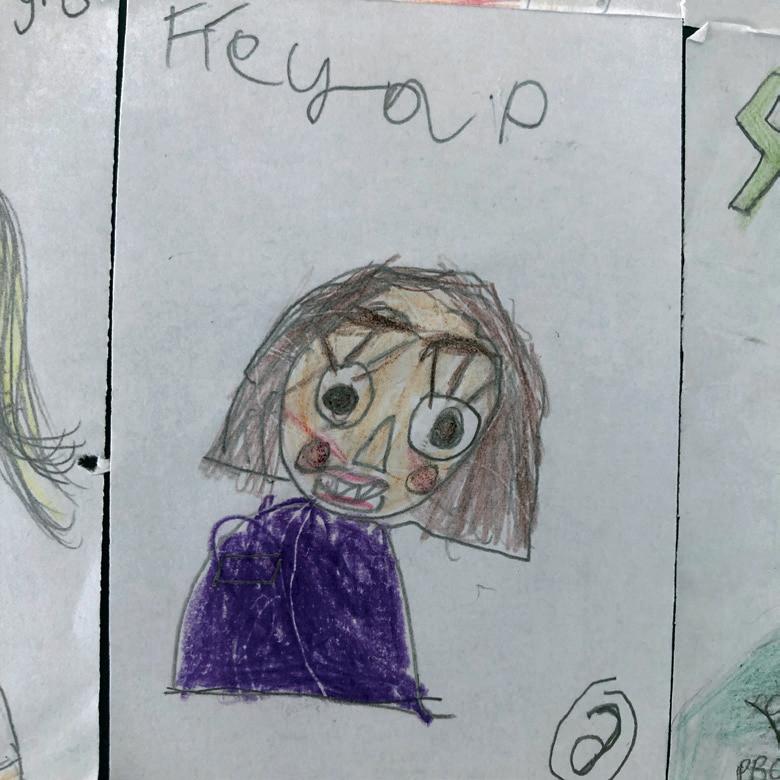 Upon retiring at the end of the summer term, Julie was presented with a large book of drawings made by every class in the school, as well as a photo album and other gifts. A few of the drawings are replicated here. I wish we had more room as some of them are just spectacular such as Freya’s above.