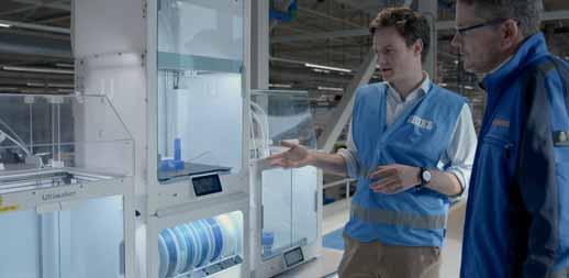 staan, die door 10 verschillende teams in 6 landen worden gebruikt. Het zijn UltiMaker-printers uit de S-serie, waaronder de nieuwste UltiMaker S7 3D-printer. Eriks koos voor deze printers omdat ze betrouwbaar presteren en lang meegaan omdat de firmware regelmatig geüpdatet wordt. Daardoor zijn ook de oudere modellen printers nog steeds te gebruiken.