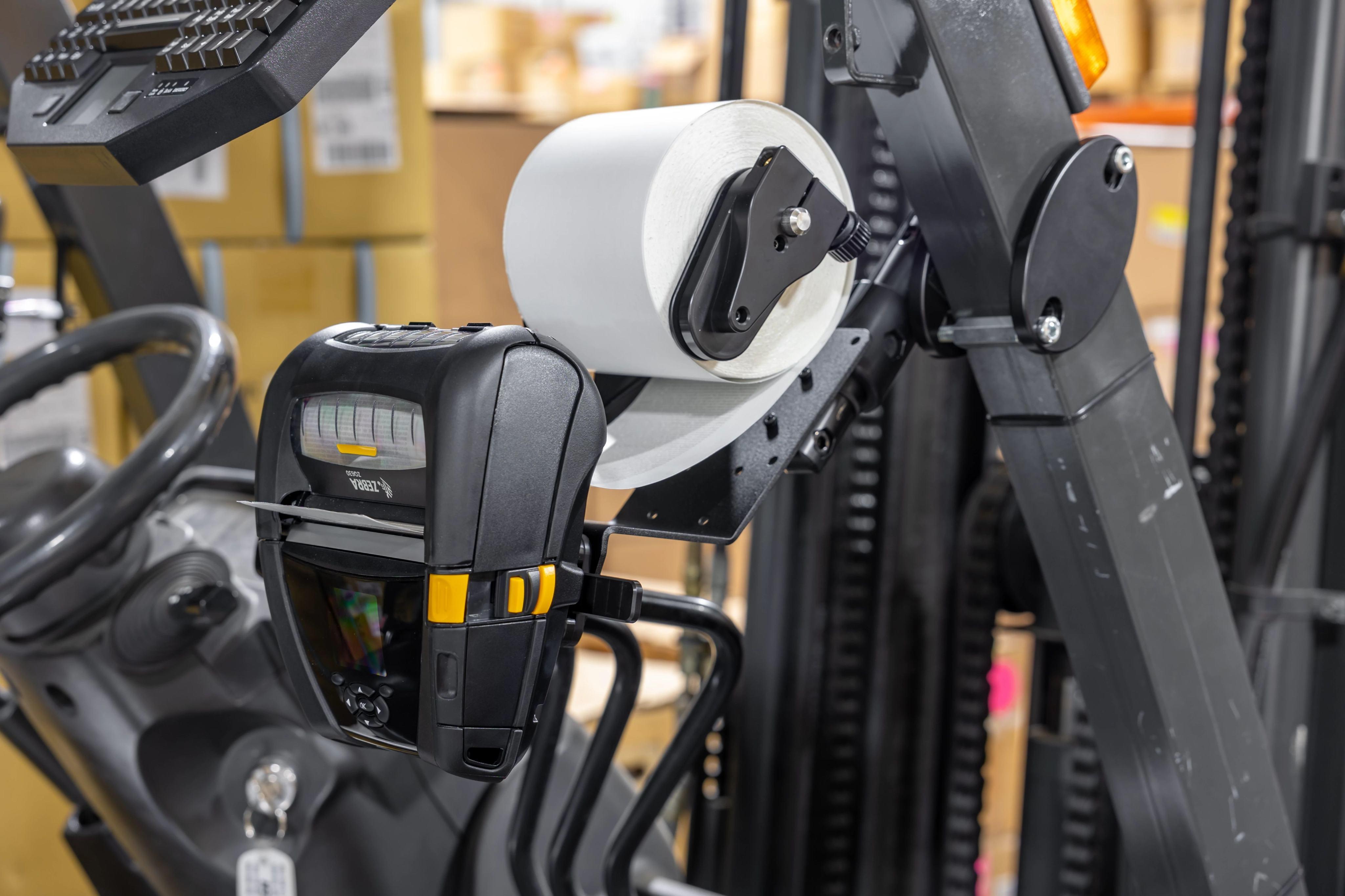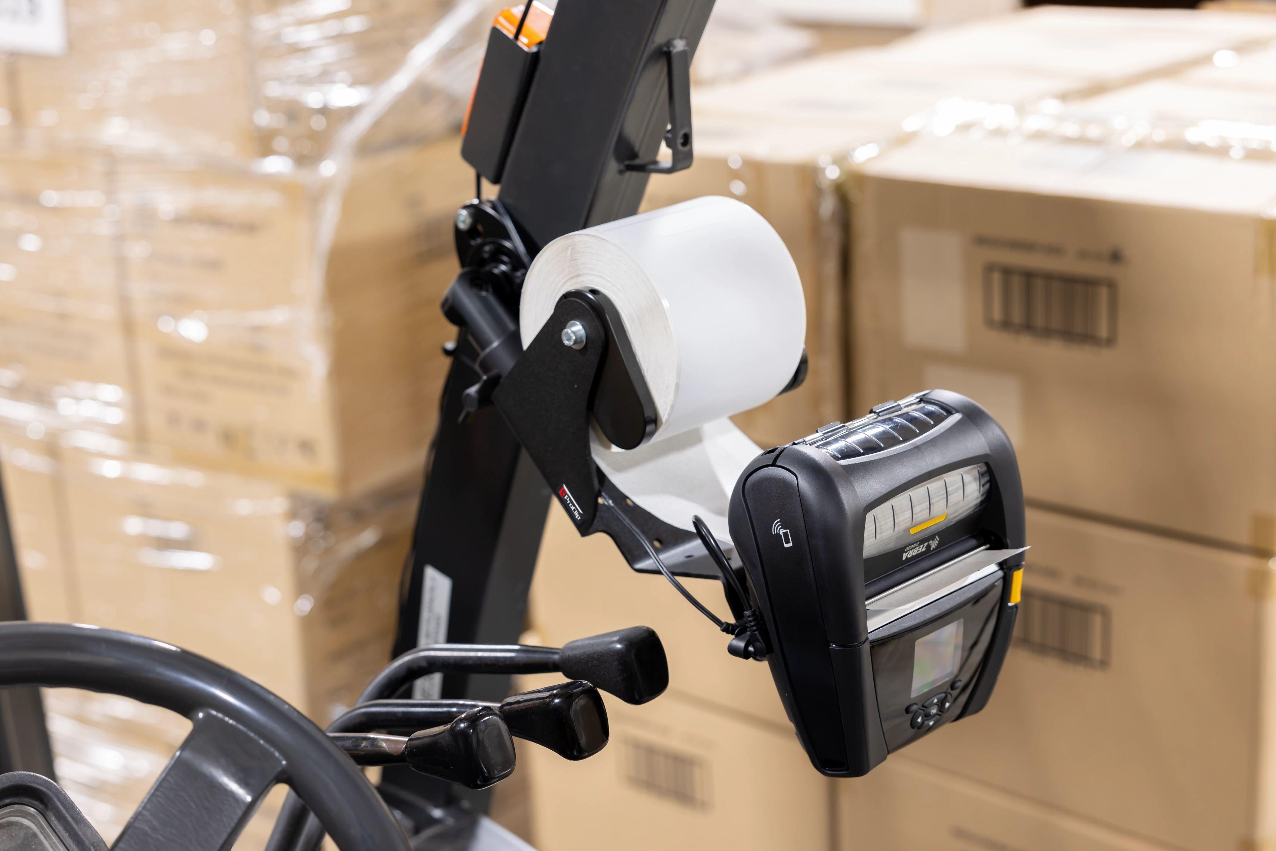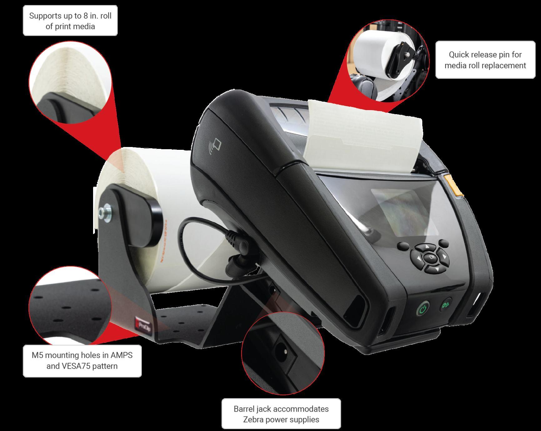 Printer Mount with Media Roller and Quick Release Power Dock for Zebra ZQ63