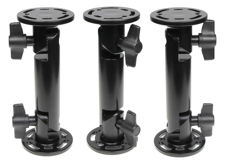 Round base plates with AMPS mounting holes allow for easily attaching cradles or devices to any mount or flat surface