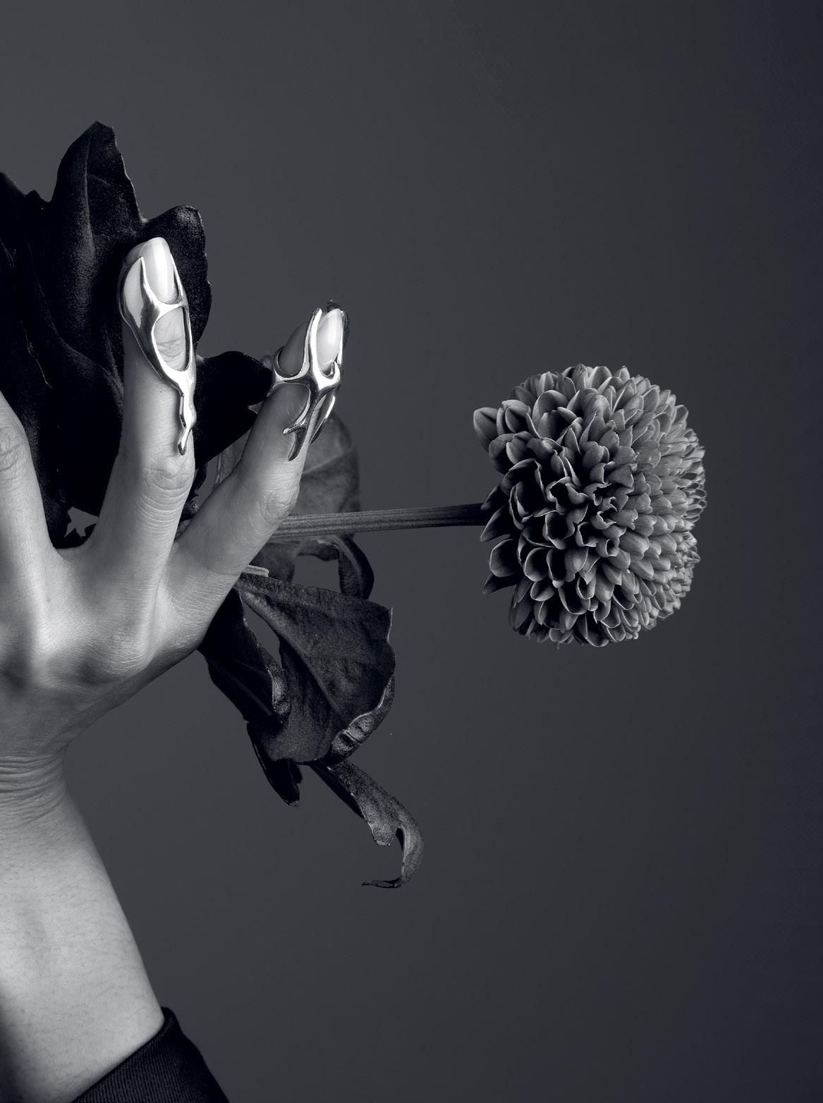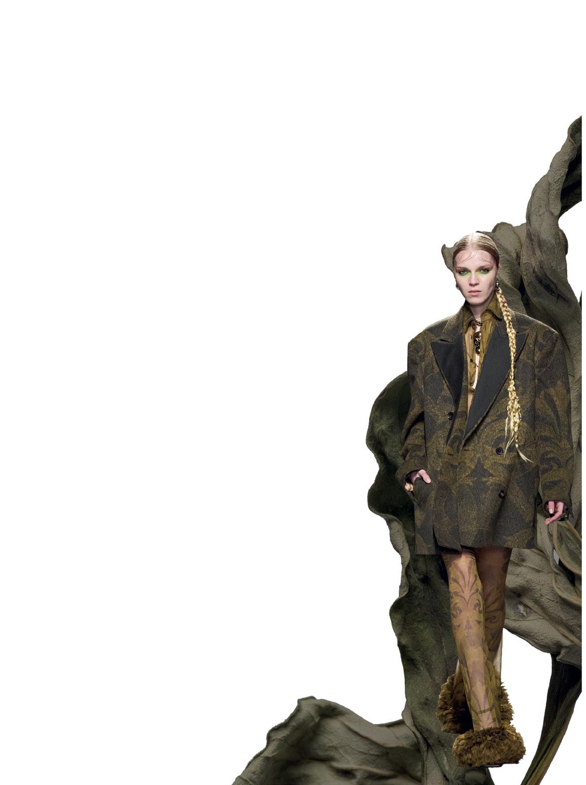 shapeofathistleflower,madeofSunGoldandAntique Silver,inspired by the heritage and historical symbol of the Maison, which has been featured in its logo since 1951, but also by the recollection of Sergio Loro Piana putting jackets in his closet with the collar turned up and lapels closed and pinned,to retain the softness of the fold.In the competitive environment of today’s fastchangingglobalmarket,theabilityofthecompanybased in Trivero has made and still makes today Loro Piana a successfulbrand,preciselybecauseitistheembodiment of a culture that is avant-garde, visionary but at the same time down-to-earth and in which tradition and humancapitalarethemostvaluedelements,leadingus to interact with a type of quiet luxury that opens the locksofanxious,pre-establishedcagesofstyleasanend in itself.A fashion that is concrete,has personality and identity,createsemotionsandhasnoboundaries.Andis constantlyever-changing.