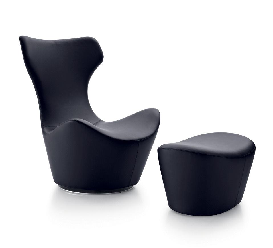 Partnerships with some of the most prestigious international designers, from Mario Bellini to Naoto Fukasawa by way of Gaetano Pesce, represented a distinguishingpointforB&Bsinceitsfounding(andeven earlier with C&B).However,the company also engaged in ongoing communication activities, approaching them with the same innovative flair used to design its products.The Coronado sofa designed in 1966 by Afra and Tobia Scarpa represents a paradigm, the creation of a formal archetype (inspired by the capitonné sofa) reinterpretedthroughtheuseofindustrialcomponents. Innovativeforitssteelsupportstructure,itscold-foamed polyurethane padding, and the use of Dacron DuPont polyester fiber,this sofa marked the first application of thesematerialsinthefurnitureindustry.GaetanoPesce’s famous Serie Up (Compasso d’oro in 2022), combined artistic performance, typical of those years, with a revolutionary message and Pop fashion: Up5_6, the armchair with sculptural pouf made of polyurethane foamstandsout.Atthetimevacuum-packedwitha90% reductioninvolume,itexpandedincontactwiththeair to take on those bountiful feminine forms conceived by thedesigner.In1972,thepartnershipwithMarioBellini produced the series Le Bambole (Compasso d’Oro in 1979). This series featured innovative natural-shaped seatsthatconcealedasupportingstructurebydrowning itinpolyurethane,tothebenefitofsoftnessandcomfort. WhiletheSitysofa(Compassod’Oroin1987),developed by Antonio Citterio in 1986 with CR&S, ushered in a systemofarmchairsandsofasthateffectivelyaddressed newwaysofenjoyingthelivingroom,theGrandePapilio armchair by Japanese designer Naoto Fukasawa was conceived in 2009 from the idea of shaping the concept of relaxation; an iconic seat inspired by the butterfly’s graceful movement. The company’s string of successes boasts diverse partnerships that mark different styles linked by innovation, research on materials and on