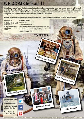 With a huge range of ideas, destinations and attractions to discover, no matter what your taste or age, you will be spoilt for choice. From beautiful landscapes and stunning views to Stately Homes and Gardens, Steam Rides to Museums the UK boasts a rich variety and selection for you. There is something for everyone no matter how old or young you are. So be inspired, plan your next adventure and discover what the UK has to offer. We hope you enjoy reading through the magazine and that it gives you some inspiration for those family days out! Published by ProDigital Media AEM Media House 21 Northcote Avenue Manchester M22 9AJ